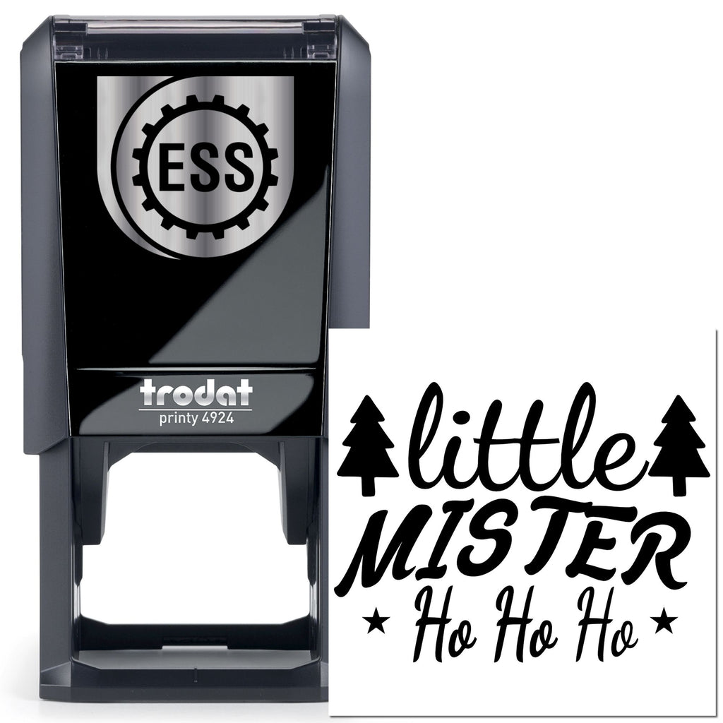 Customize your vibe with 11 bold, fast-drying ink shades and a versatile 1-5/8 square imprint that frames your design just right. Central text showcases a cheeky honorific in a playful mix of flowing cursive and strong block type, flanked by two stylized pine icons and a merry triple-chant dotted with tiny stars—clean lines and high contrast that pop on place cards, invites, and favor tags, from cozy winter gatherings to year-round parties.