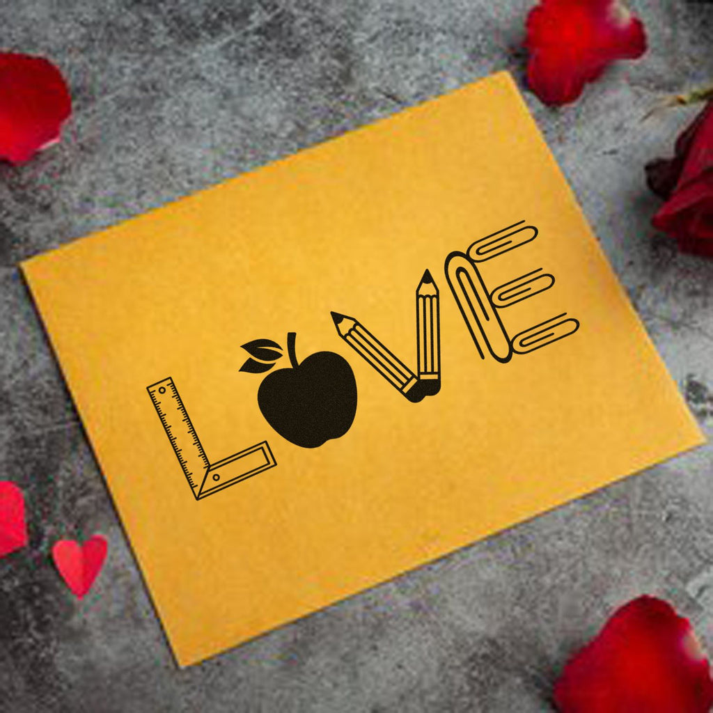 - Size: Compact 1-5/8" square perfectly frames the playful LOVE composed of ruler, apple, pencils, and paperclips—large enough for impact, small enough for envelopes, place cards, and RSVP inserts.