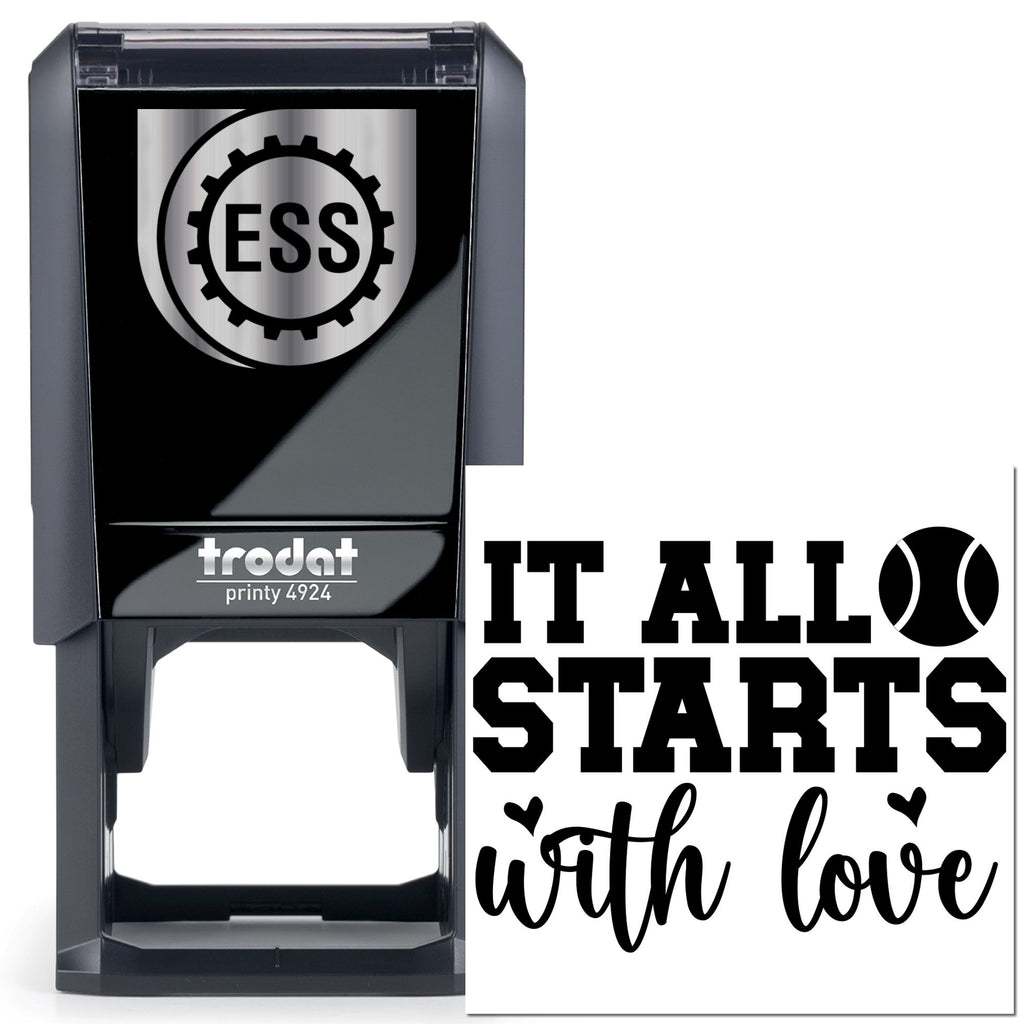 Honed for heartfelt moments, the Self-Inking Love Starts Favor Tag Stamp turns every tag into a tiny keepsake—uniting team spirit and tender sentiment in one effortless press. The bold “IT ALL STARTS” in collegiate lettering swaps the O for a baseball icon, while a flowing script finishes the thought “with love,” sprinkled with sweet heart accents—perfect for favors that feel personal, playful, and polished.