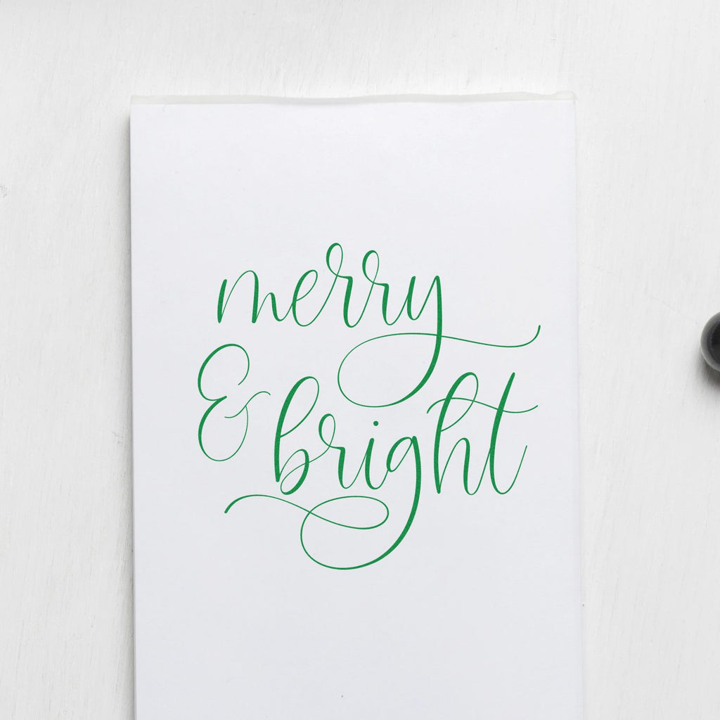Precision laser engraving etches every curve of “merry bright” for sharp, professional results—perfect for greeting cards, gift tags, mailers, and return envelopes.