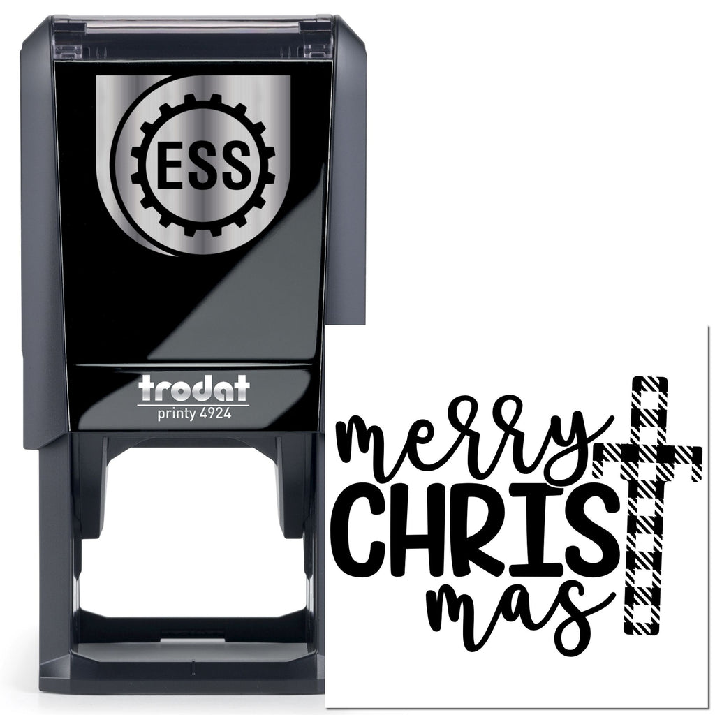 I remember the first time we pressed this “Merry Christmas” design—ink met paper and the season came alive: bold, flowing black lettering on a crisp white field, with a tall cross replacing the “T,” dressed in chic black‑and‑white plaid for a modern, textured twist. The 1-5/8" square format lands with perfect balance—eye-catching on cards, tags, labels, and small packaging.