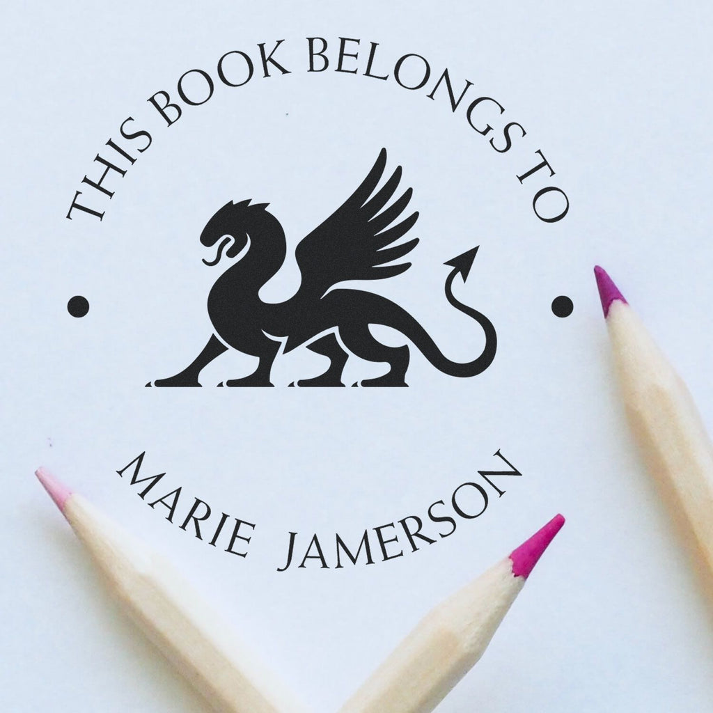 - PERSONALIZE YOUR COLLECTION: Transform your library with this striking dragon-themed self-inking stamp, featuring custom text and a fierce dragon design. Perfect for marking ownership of books, documents, and collectibles with style and authority.