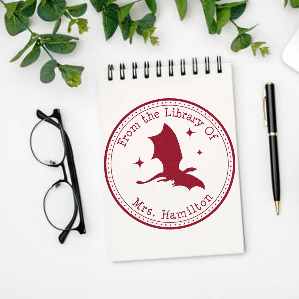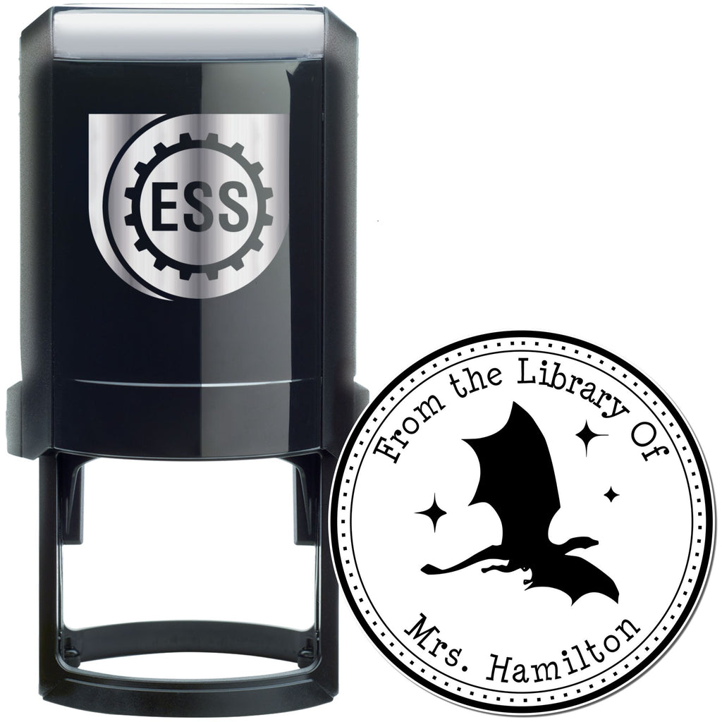 Introducing the Self-Inking Moon Shadow Custom Made Library Stamper – the ultimate tool for avid readers and book collectors! This exquisite Round Bookplate Stamp is designed to add a personal touch to your beloved books, allowing you to create unique bookplates that proudly signify your ownership. With a stunning center image of a Moon Shadow Dragon, this stamp not only enhances the aesthetic appeal of your collection but also acts as a powerful deterrent against theft, ensuring your books remain safe and sound.