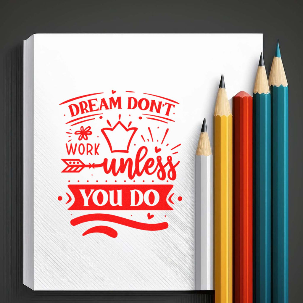 The design channels hand-drawn charm—flowing script meets bold block lettering, surrounded by little hearts, stars, an arrow and a crown—so every stamped mantra feels like a crafted piece of encouragement that lifts walls, desks, and product photos alike.