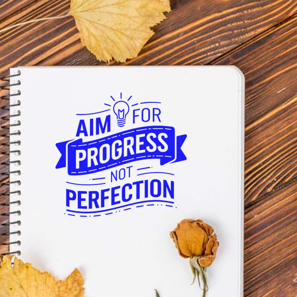 Unbox a daily dose of momentum: our Self-Inking Motivational Poster Paper Craft Stamp—an effortless way to turn any surface into a reminder to “Aim for Progress Not Perfection.” A bold block headline meets a flowing banner script beneath a stylized lightbulb, radiating fresh ideas and forward motion. One smooth press delivers a crisp, gallery-worthy impression that feels both personal and polished.