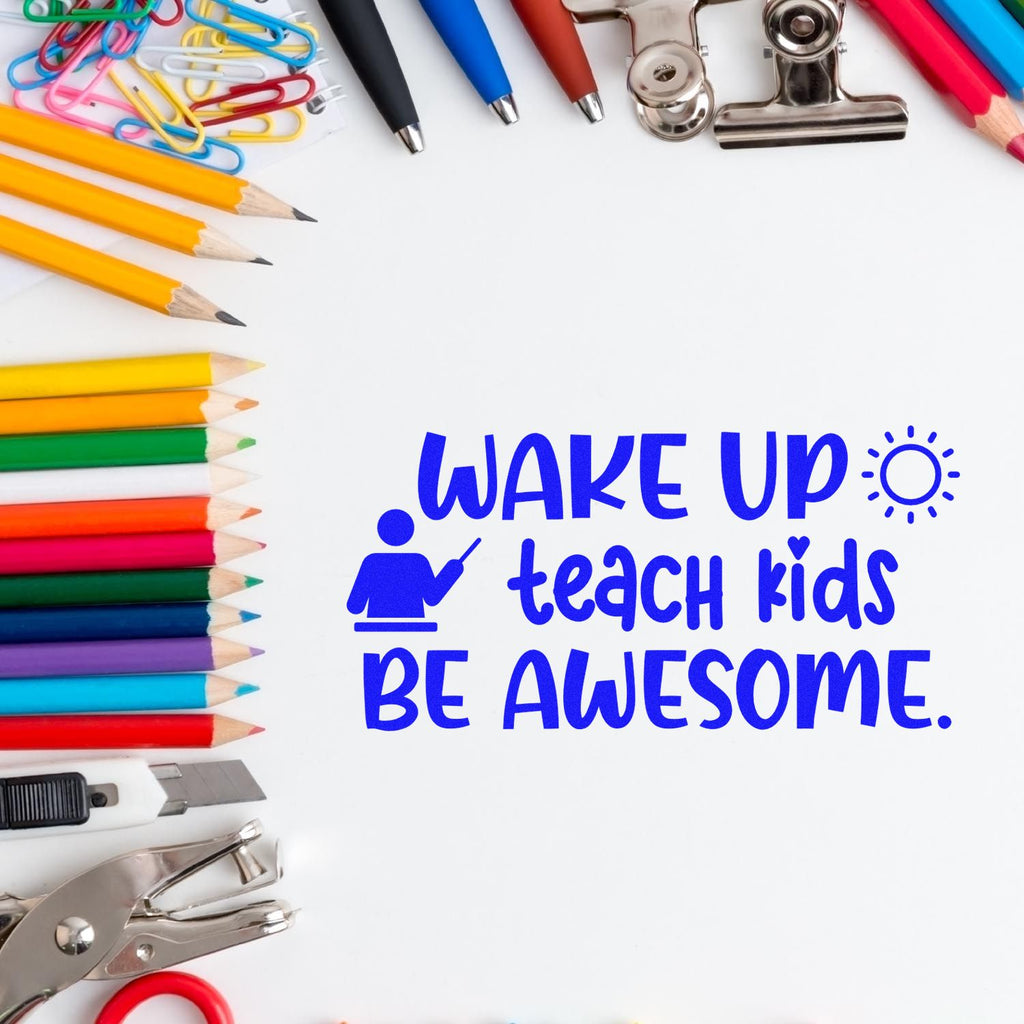 - Create consistency: 1-5/8" square bold black-and-white artwork reads “WAKE UP” with a sunrise, a teacher silhouette and the rallying “BE AWESOME,” giving every card, page, or poster a polished, motivating look.
