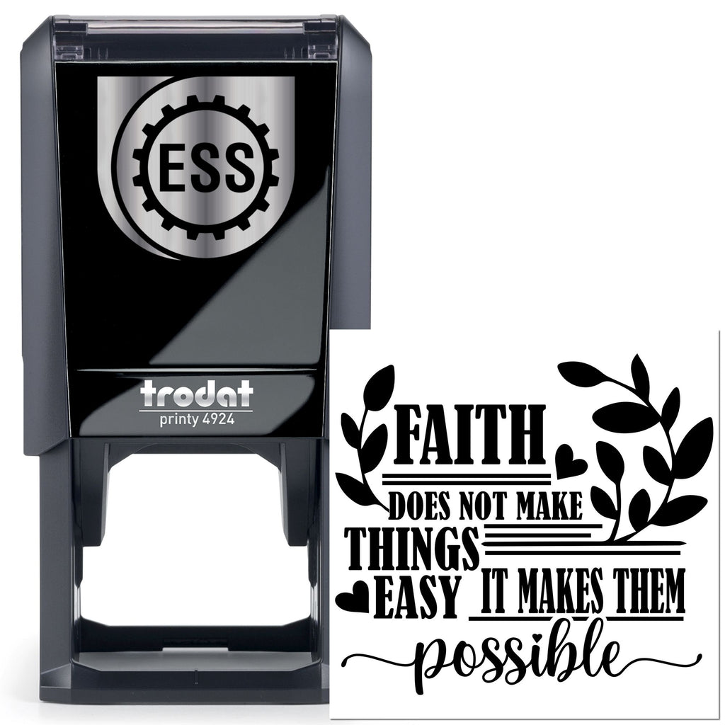 Vibrant encouragement is just one press away with this self-inking Motivational Quote Card Making Stamp, designed for teachers, makers, and anyone who believes in the power of positive words. Sized at a versatile 1-5/8" square, it delivers a bold, black‑and‑white “FAITH” design in strong block lettering, paired with the uplifting reminder: “does not make things easy it makes them possible.” Delicate leaf sprigs and tiny heart accents frame the message, turning every impression into a tiny work of art that feels thoughtful, modern, and deeply encouraging.