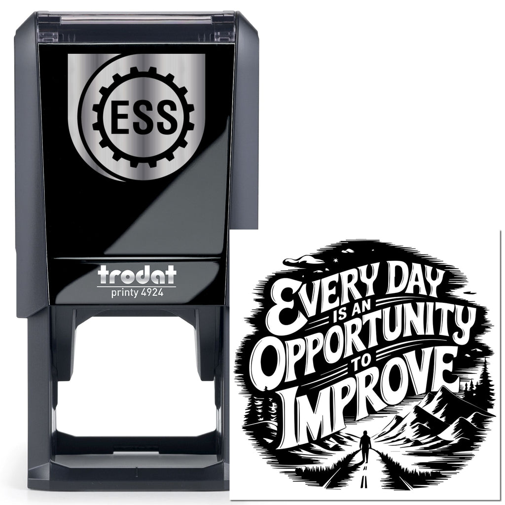 Driven by craft and heart, this self-inking motivational quote stamp turns every press into a promise: “Every day is an opportunity to improve.” A lone figure strides a winding road beneath star-kissed skies, framed by pines and mountains—bold hand-lettering and cinematic detail that spark momentum on cards, pages, and classroom displays. Sized at a versatile 1-5/8" square, it’s the perfect footprint for standout statements without crowding your layout.