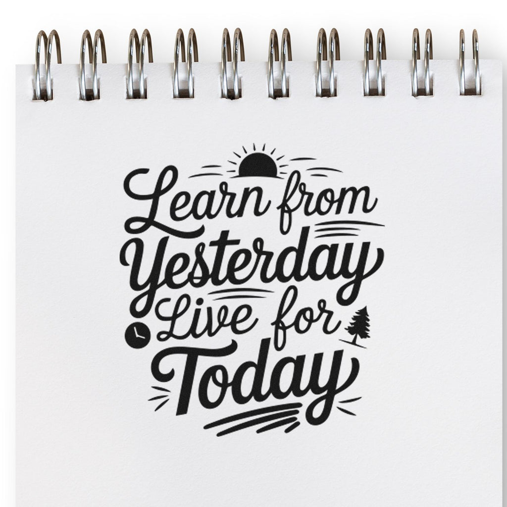 Meet the Self-Inking Motivational Quote Greeting Card Stamp from ESS — a compact 1-5/8" square powerhouse that makes stamping simple and unstoppable. With a single smooth push you get consistently sharp, professional impressions: precision laser-engraved plates, razor-clear detail, and energetic script that carries a glowing sunrise motif above the bold words "Seize the present," finished with a tasteful clock emblem and lone pine silhouette for effortless, daily inspiration.