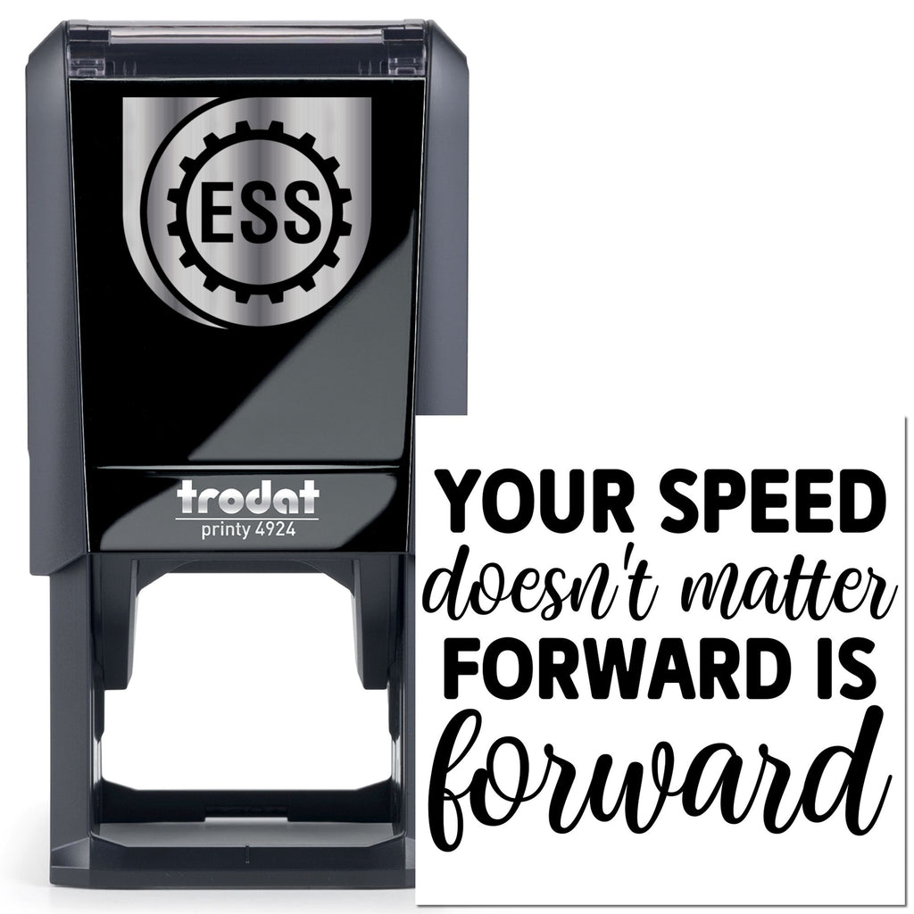 Crafted in our Easy Press & Print line, each finely laser‑engraved die delivers crisp detail in a single, confident motion. The 1‑5/8" square impression pairs a bold block headline with graceful cursive to proclaim that moving forward matters more than speed—clean white space, striking black typography, undeniable momentum.