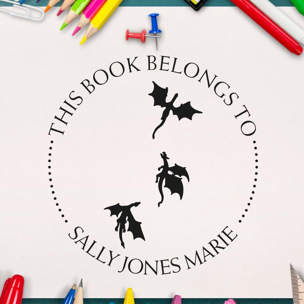 Elevate your personal library with our stunning Self-Inking Nebula Nest Custom Made Book Ownership Stamp! This delightful "Round Ex Libris" stamp is not just a tool; it's a statement of your love for books. Featuring the enchanting image of a Nebula Nest Dragon, this stamp beautifully showcases the phrase "Ex Libris" followed by your name, adding a scholarly touch to your cherished collection. With a diameter of 1-5/8", it’s the perfect size to make a lasting impression on your favorite volumes.