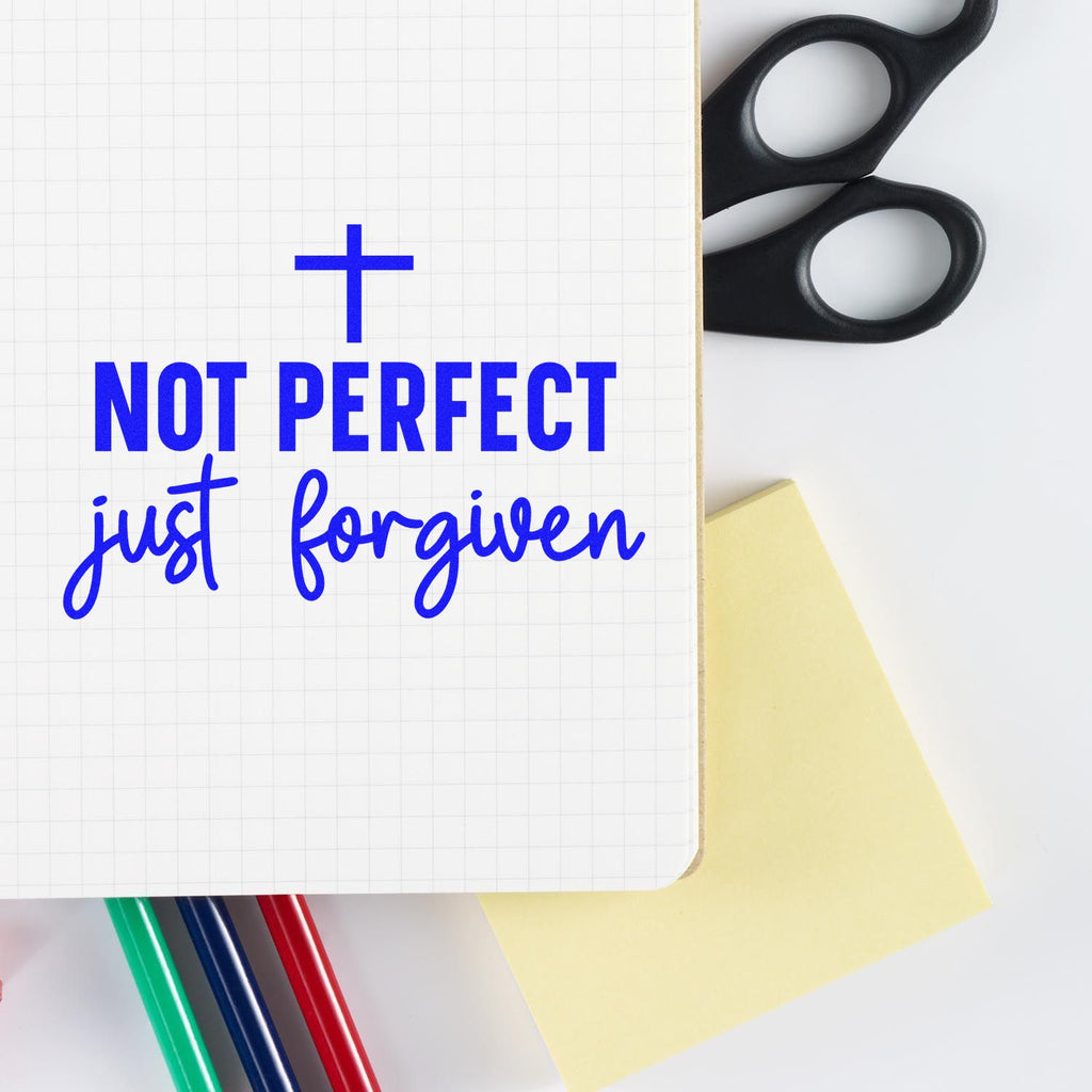OStep into the beauty of “not perfect” with our Self-Inking Not perfect Scrapbook Stamp, crafted for scrapbookers and junk journal artists who live for real, raw, and wonderfully imperfect stories on paper. Each press leaves a bold NOT perfect crowned with a sleek black cross, grounded by the gentle, handwritten-style words just forgiven—a powerful, grace-filled message tucked right into your pages.