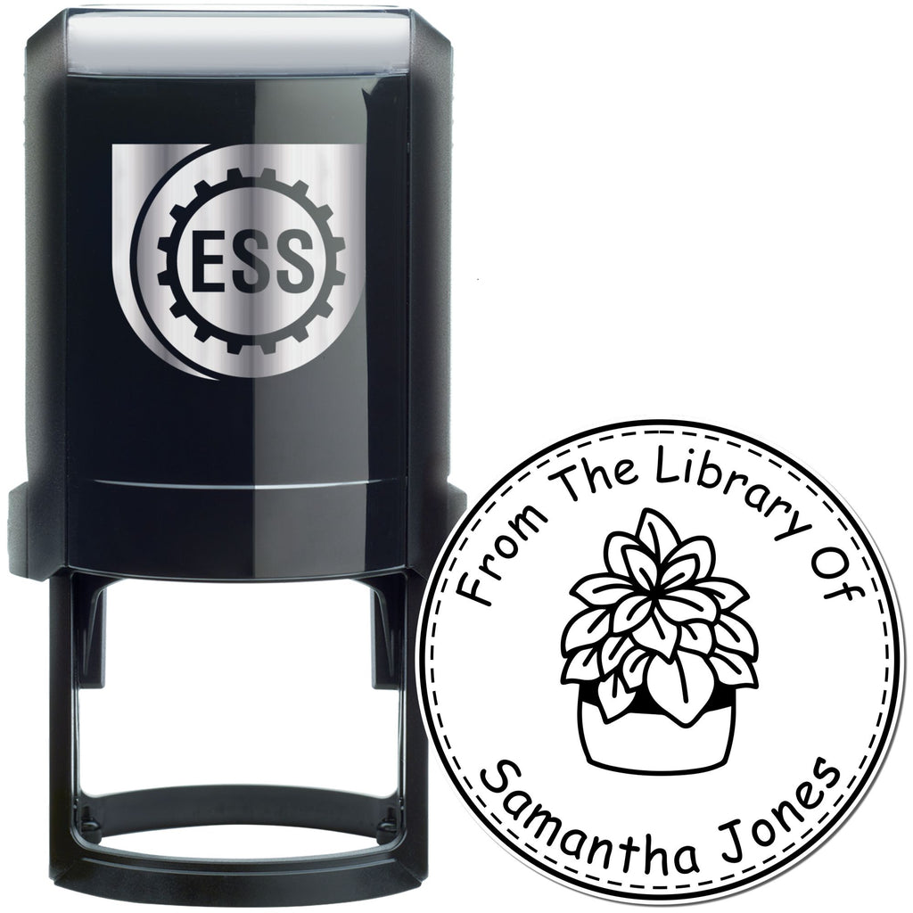 Introducing the Self-Inking Ornate Leafage Customized Book Property Stamp – the perfect accessory for every avid book collector! This stylish and functional stamp not only marks your ownership but also adds a personal touch to your cherished library. With a diameter of 1-5/8", it features a beautifully designed center image of a succulent in a short vase, surrounded by a double ring circular border. The phrases "This Book Belongs To" and "From The Library of" elegantly frame your name or a custom saying, making each stamped book uniquely yours.
