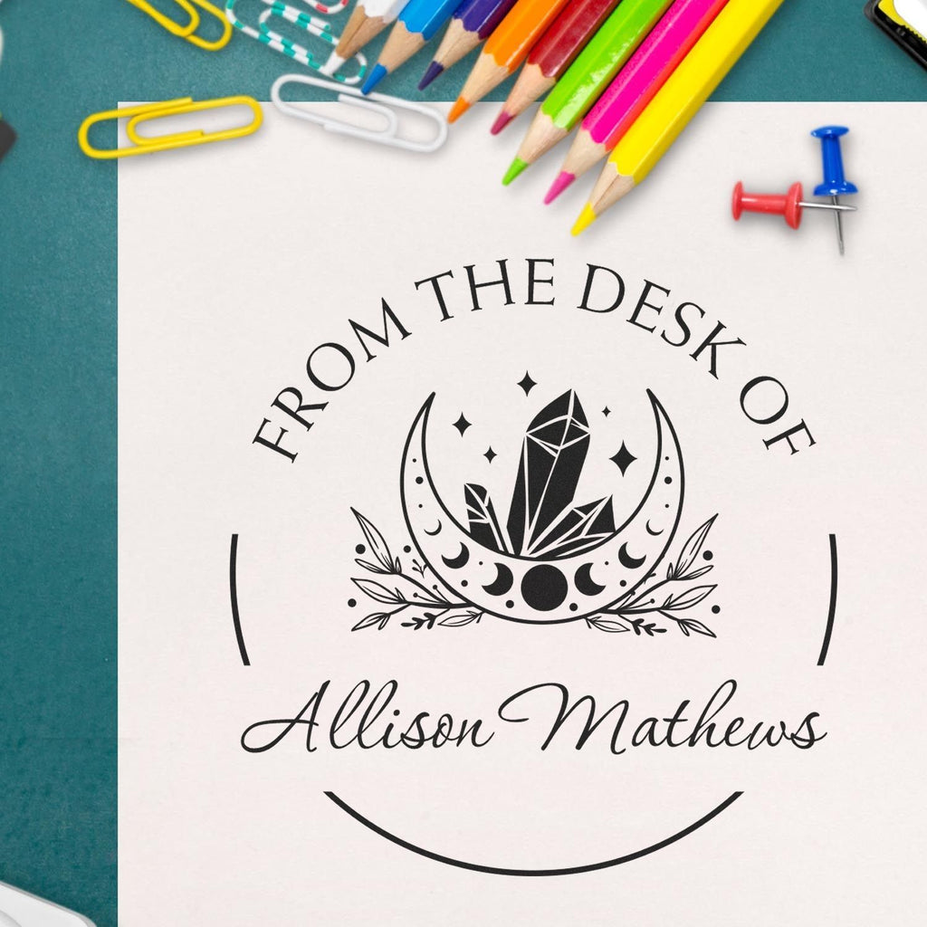 - PROFESSIONAL CRAFTSMANSHIP: Each stamp features precision-engraved details of crystals, stars, and mystical elements. Customizable text options include "This Book Belongs To," "From The Library of," or "Ex Libris."