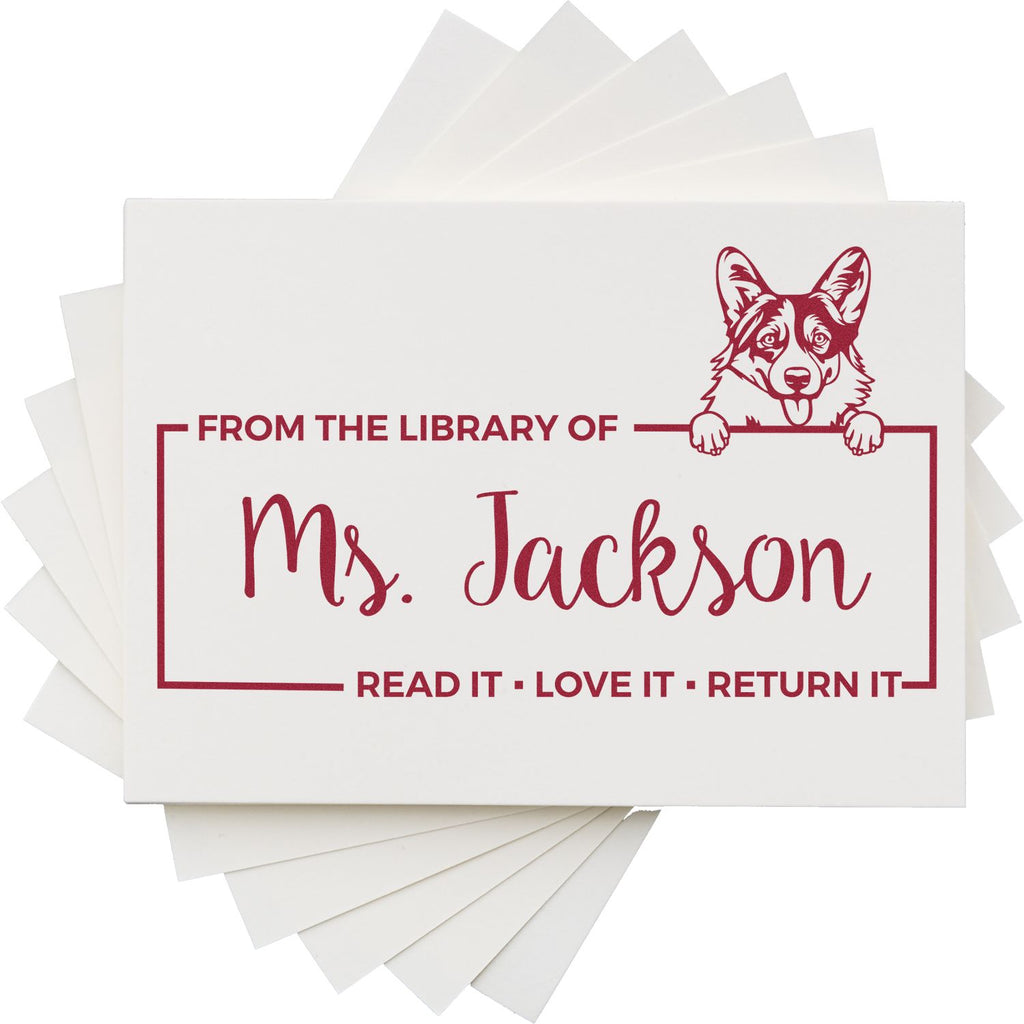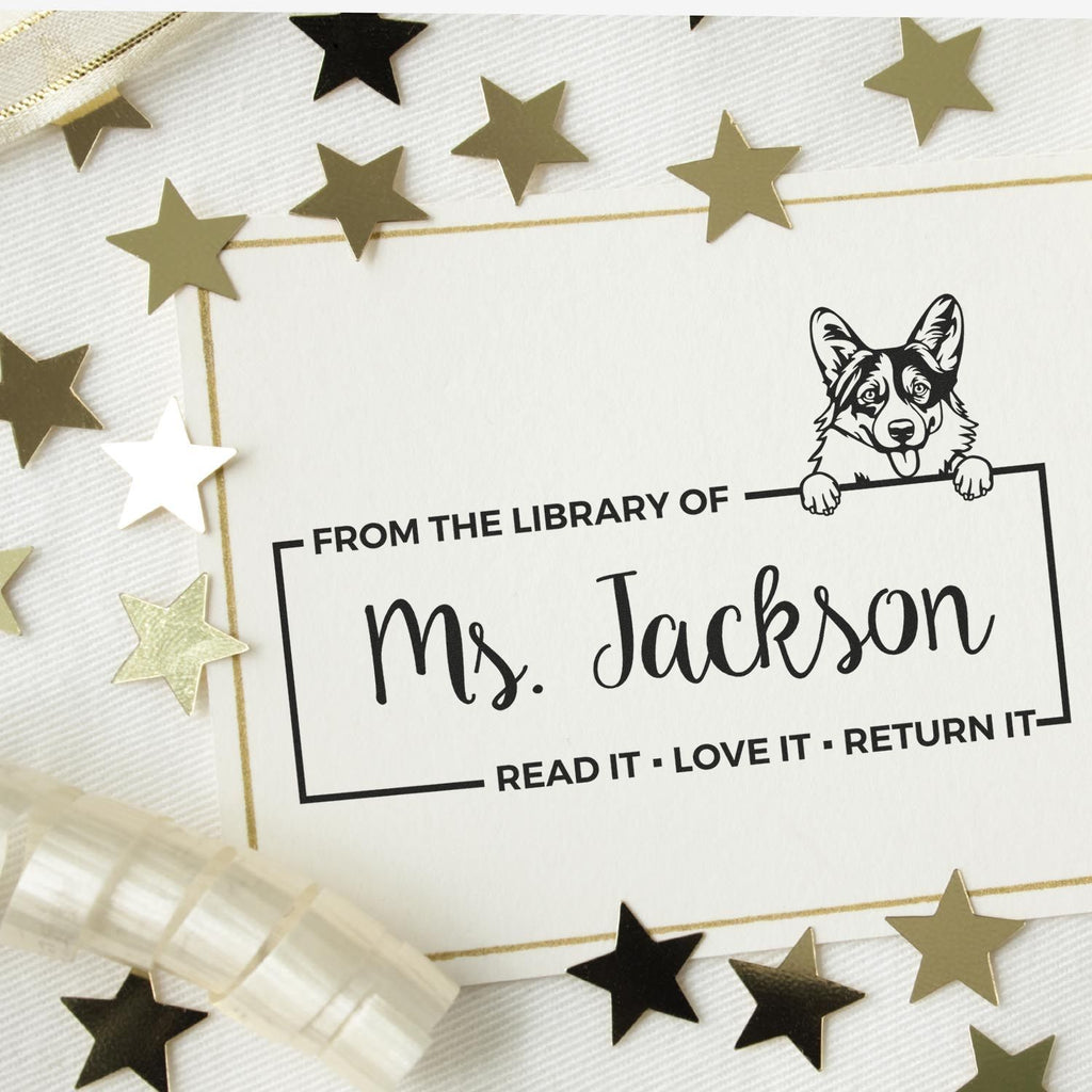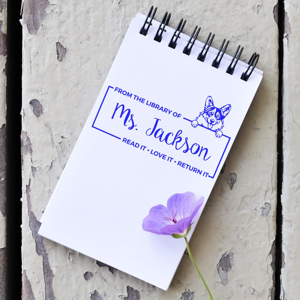 - PERSONALIZED CORGI DESIGN: Featuring an adorable Pembroke Welsh Corgi illustration, this 1-9/16" x 2-3/8" stamp adds a playful touch to your books. Perfect for dog lovers and Corgi enthusiasts who want to mark their literary collection with style.