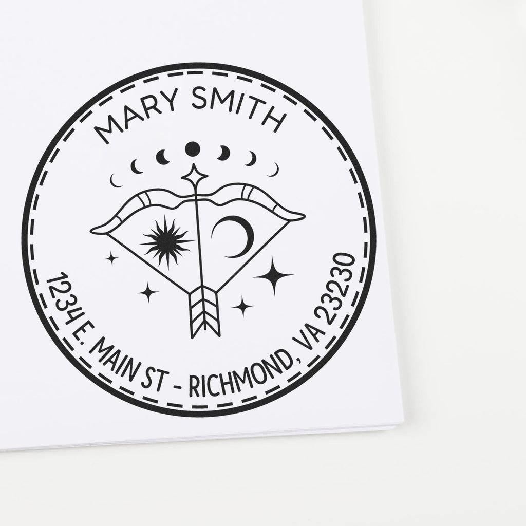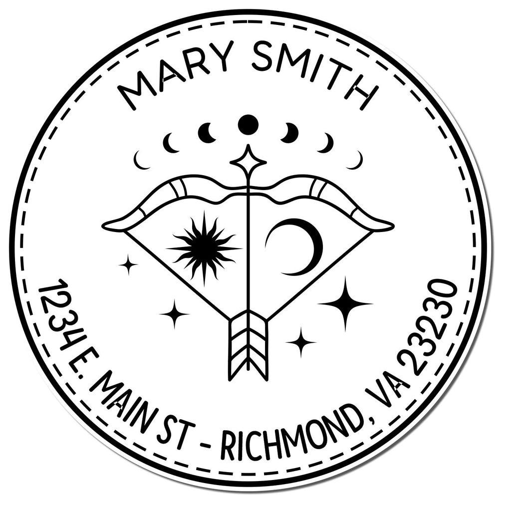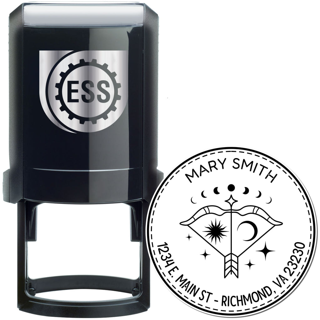 Elevate your mailing game with our Self-Inking Philosophical Sagittarius Personalized Home Address Stamper! This unique stamp is not just a tool; it’s a statement of your astrological identity. Featuring a stunning design that showcases the Sagittarius symbol—a bow and arrow intertwined with sun and moon imagery—this stamp is perfect for astrology enthusiasts who love to express their zodiac sign in their home decor. With a diameter of 1-5/8", it’s the ideal size for making a bold impression on envelopes, invitations, and personal items.