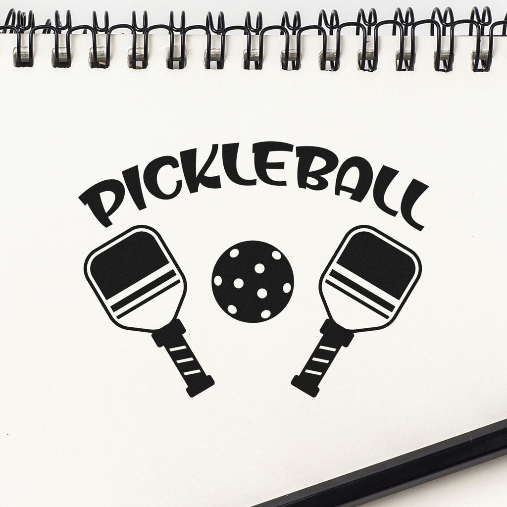 Born from players’ needs, this 1-5/8" square stamp drops a crisp graphic: two sleek paddles framing a perforated ball, with PICKLEBALL sweeping bold above—high-contrast black on white for instant visibility across busy courts.