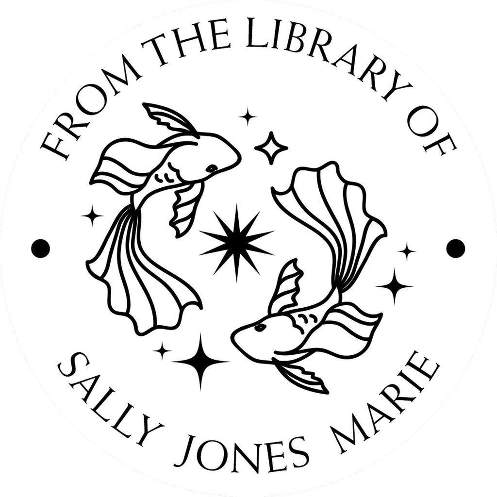 - PERSONALIZED STAMPING EXPERIENCE: Transform your reading experience with our Self-Inking Pisces Swimming Fish Stamp! Effortlessly imprint your name or institution's details on your books, ensuring they are easily identifiable and returnable. Perfect for bibliophiles who cherish their collections!