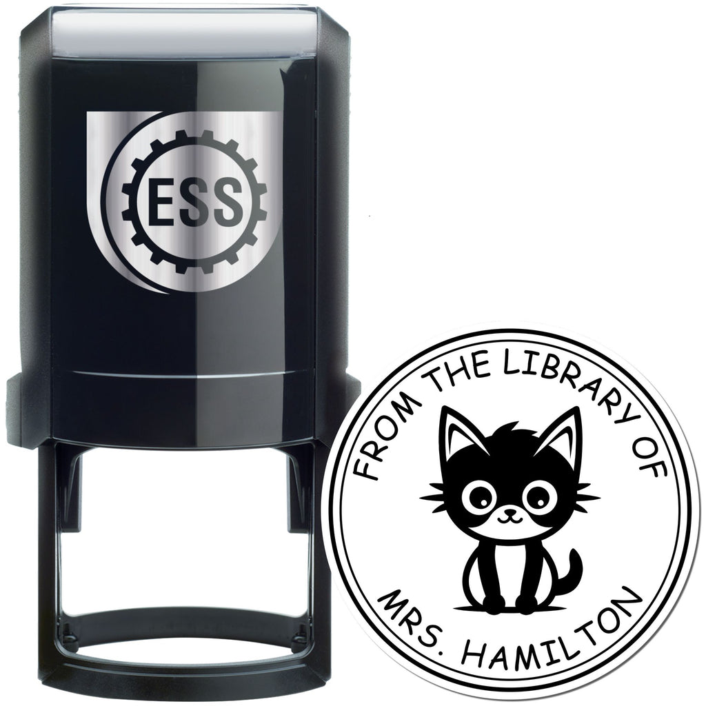 - PERSONALIZED LIBRARY MARKING: Create a lasting impression with this 1-5/8" diameter self-inking stamp featuring a charming playful kitty design. Perfect for teachers and book lovers, this custom stamp ensures your books return home safely.
