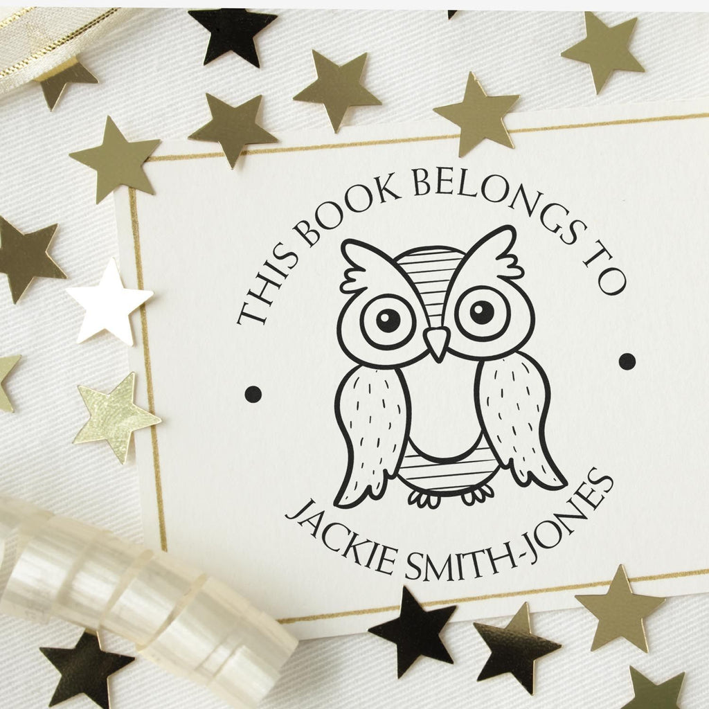 Self-Inking Playful Owl Custom Book Ownership Stamper Highlights and Features