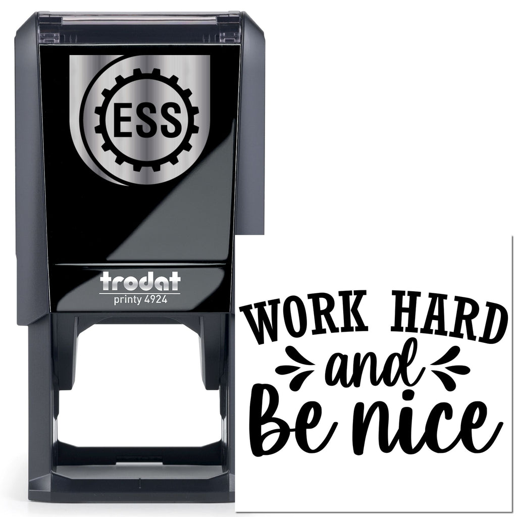 WORK HARD stands bold and confident across the top. A graceful, hand-lettered “and” bridges the message with charm. Anchoring it all, a warm, larger cursive “Be nice” invites connection—an instant culture-setter for classrooms, meetings, and events where standards and kindness meet.