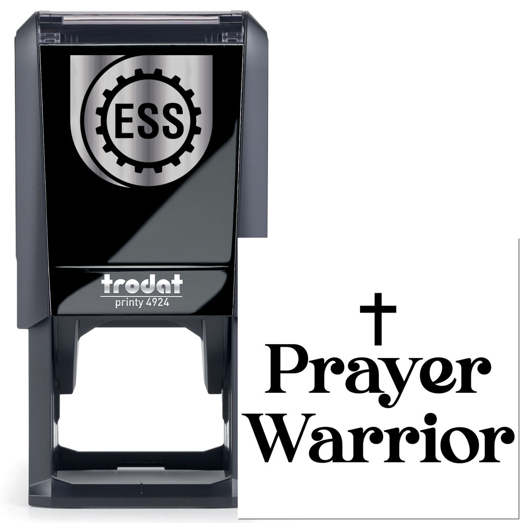 - High-quality feel: The 1-5/8" square stamp uses a sleek ebony cross and stately serif “PRAYER WARRIOR” in a clean white field for striking contrast that reads clearly on postcards, envelopes, and branded stationery.