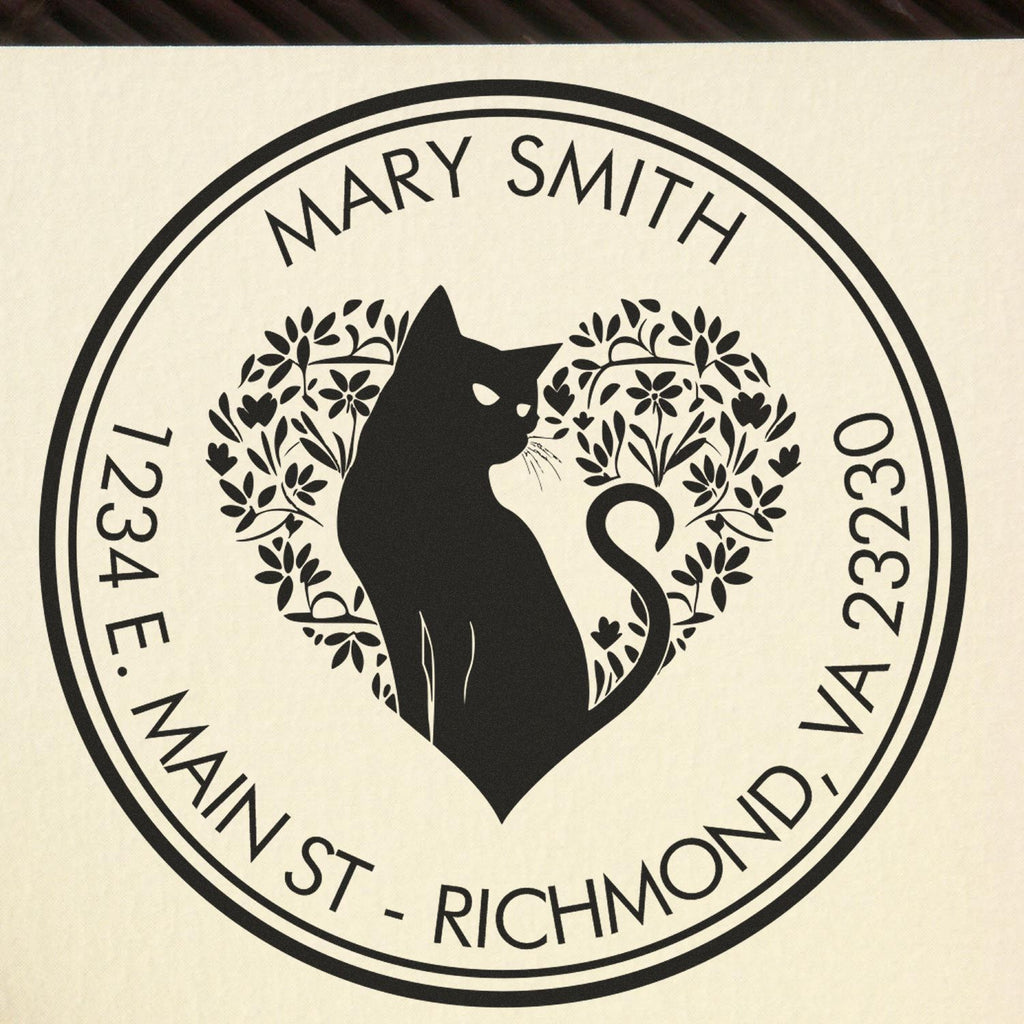 Introducing the Self-Inking Puzzling Cat Personalized Home Stamp – the perfect blend of charm and functionality for cat lovers and stationery enthusiasts alike! This delightful stamp features a whimsical Puzzling Cat surrounded by a heart of flowers, making it a unique addition to your home decor and correspondence. With a diameter of 1-5/8", this stamp is designed to make a statement while providing you with the efficiency you need in your daily tasks.