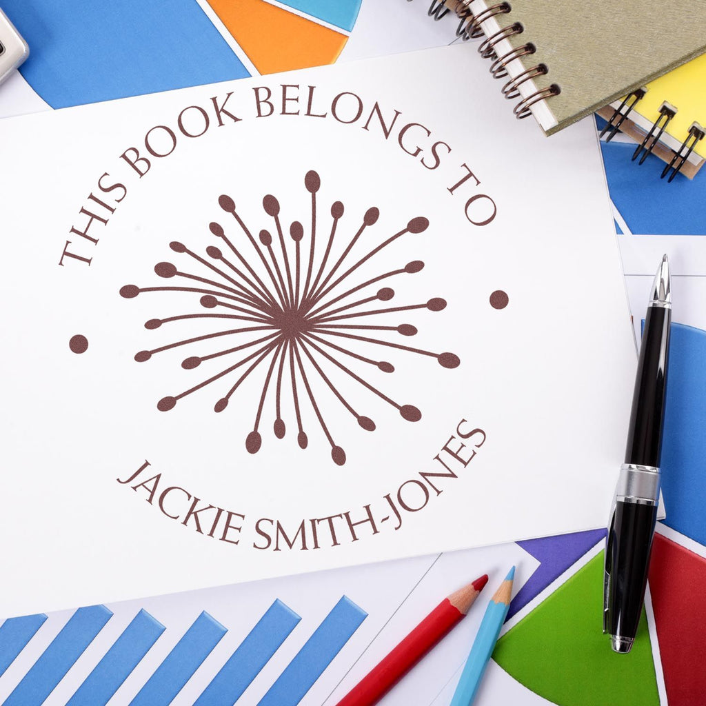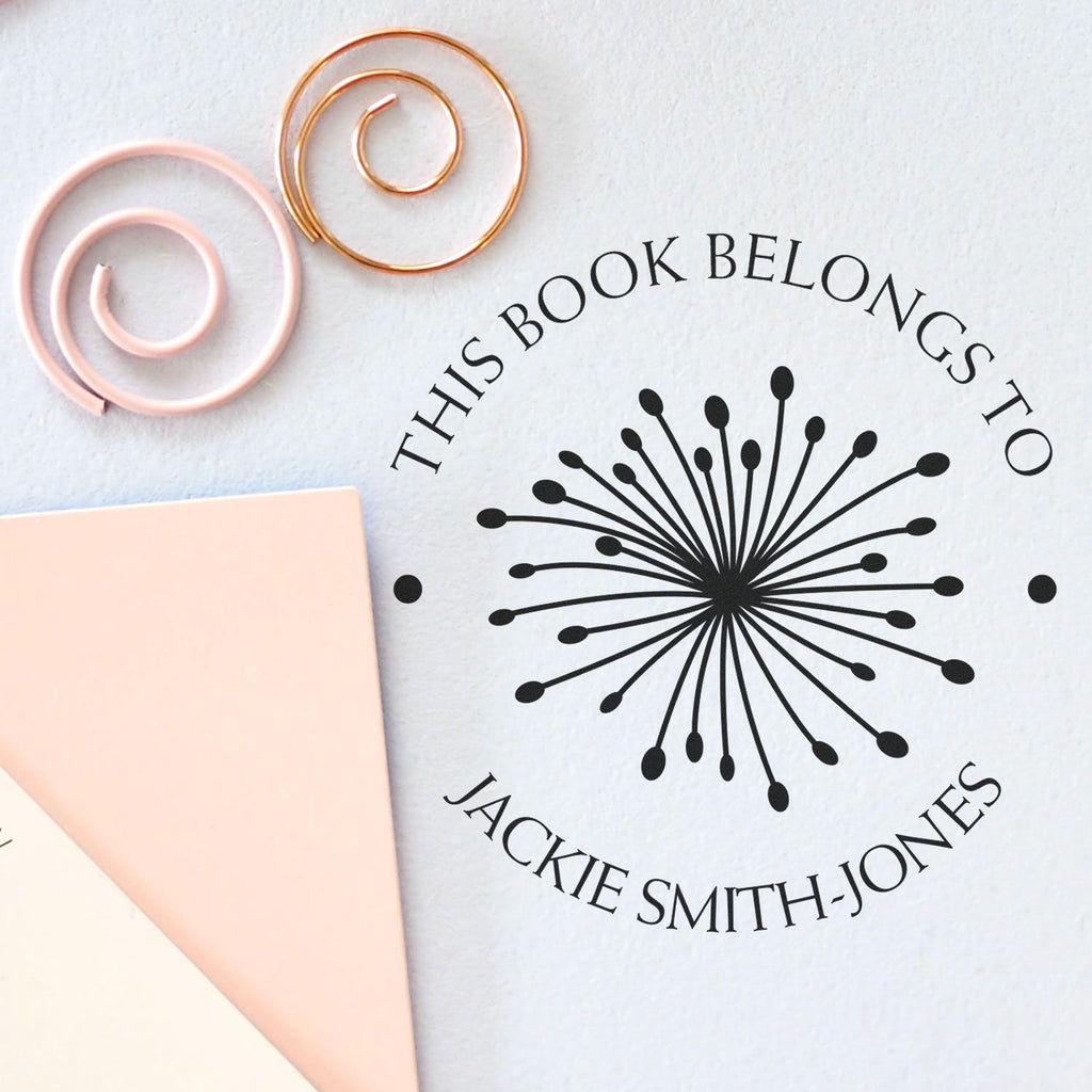 - PERSONALIZED LIBRARY STAMP: Create a lasting impression with this 1-5/8" diameter self-inking stamp featuring elegant radiant stems design. Perfect for marking your cherished books with style and professionalism. Up to 10,000 crisp impressions guaranteed.