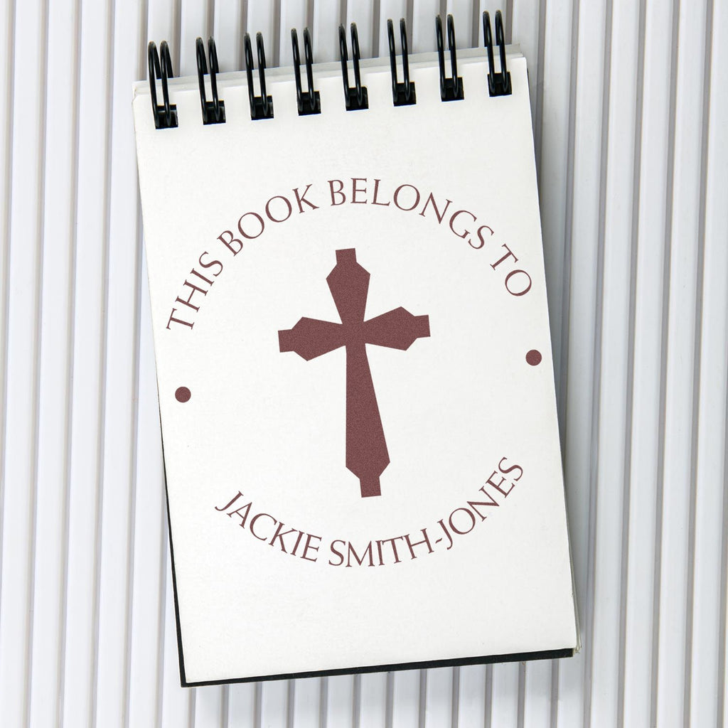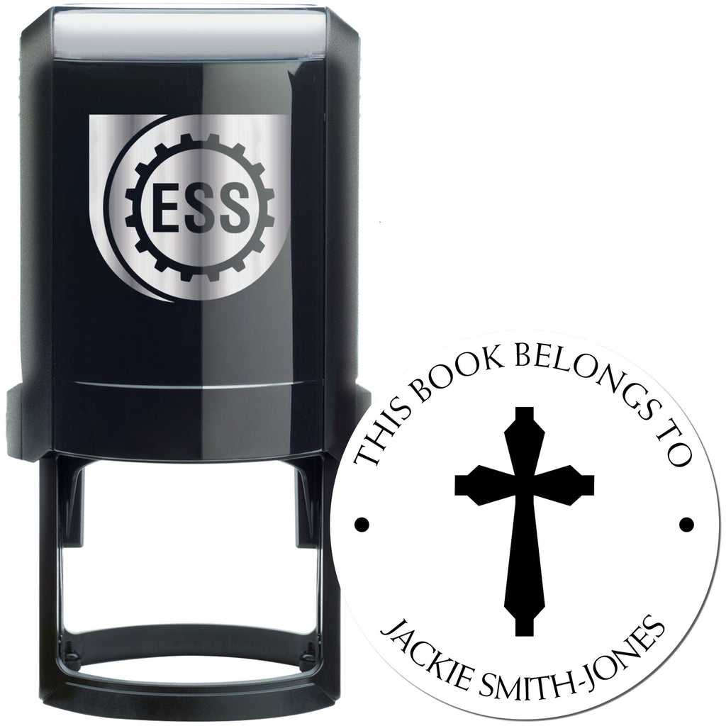 Elevate your mailing experience with our Self-Inking Regal Cross Address Stamp! This premium address stamp is designed for homeowners who value efficiency and elegance in their correspondence. With a stunning center image of a Regal Cross, this stamp features a clean round design that includes phrases like "This Book Belongs To" and "From The Library of" at the top arc, followed by your name or a personal saying at the bottom arc. The impression size is a perfect 1-5/8" in diameter, making it ideal for all your mailing needs.