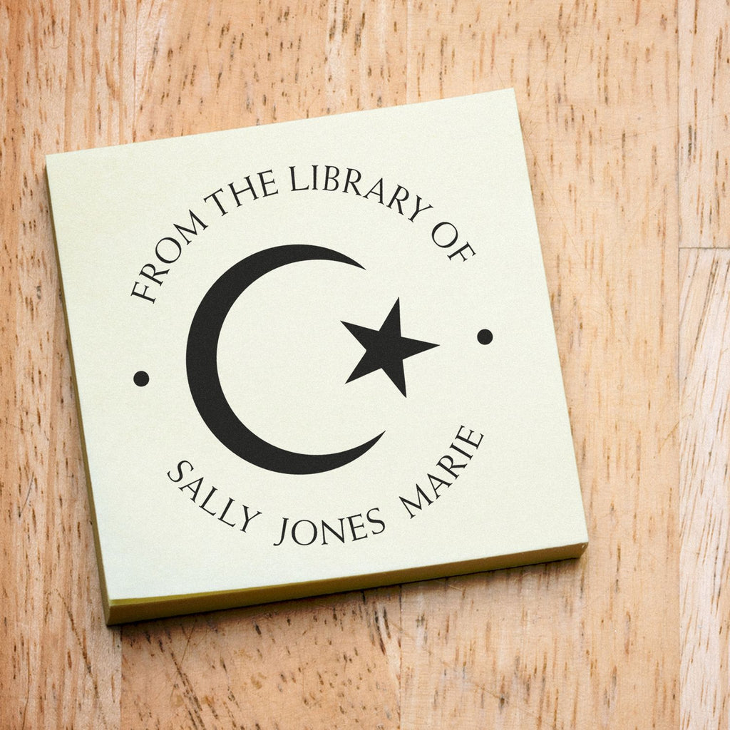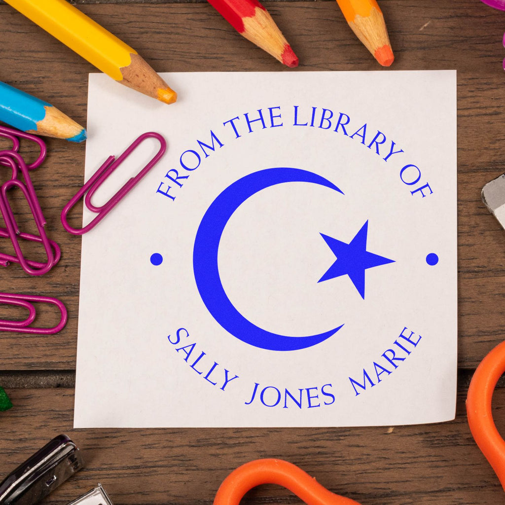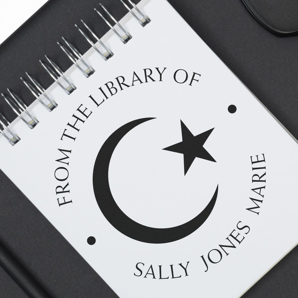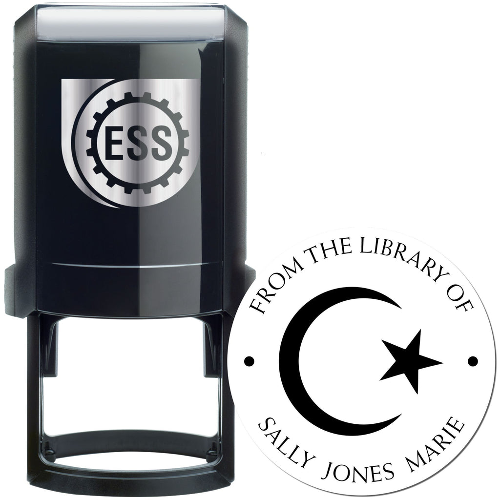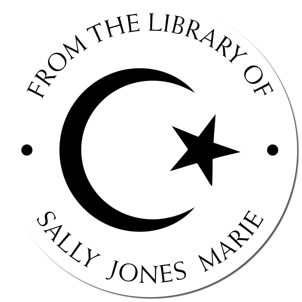 This exquisite address stamp features a clean round design with a center image of Respected Crescent holy images, elegantly framed by phrases like "This Book Belongs To" and "From The Library of". Customize it with your name or a personal saying at the bottom arc, separated by two stylish dots. With an impression size of 1-5/8", this stamp is perfect for small business owners looking to streamline their mailings while enhancing their brand identity.