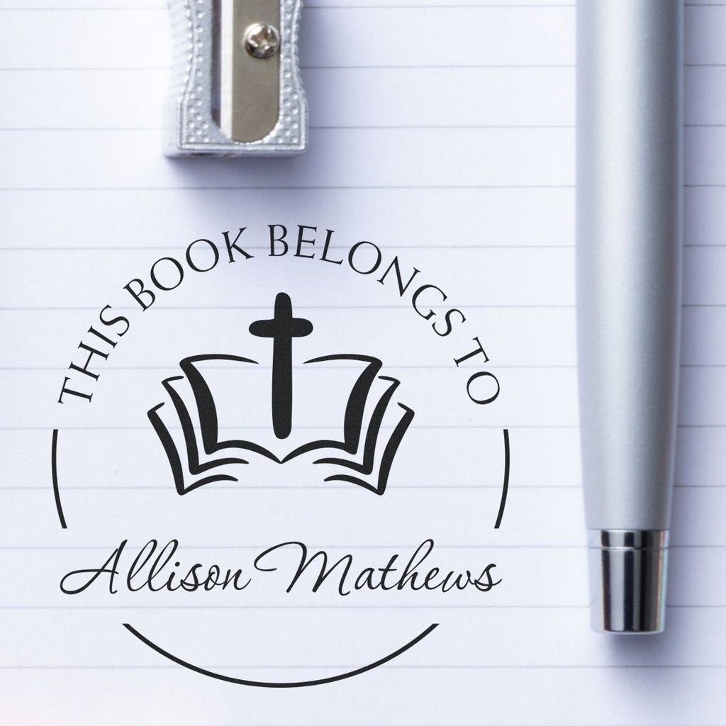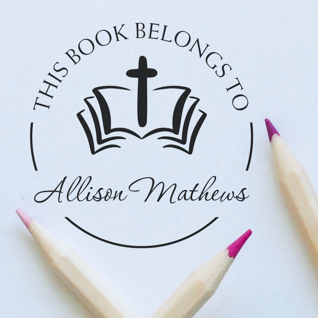 - PROFESSIONAL QUALITY STAMPING: Laser-engraved design ensures crisp, clear impressions every time. Features a respected cross with open bible design, perfect for library organization and document marking. Maintains consistency across 10,000+ impressions.