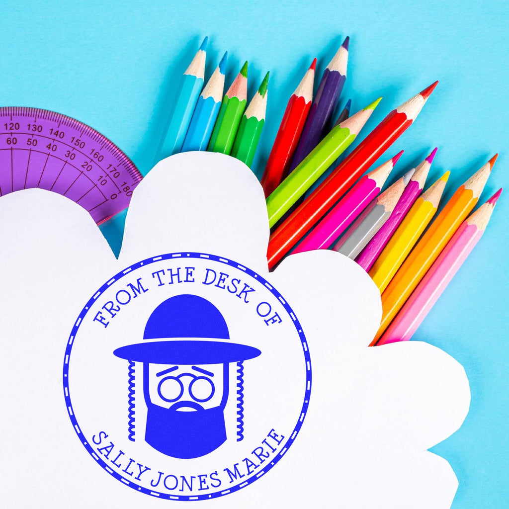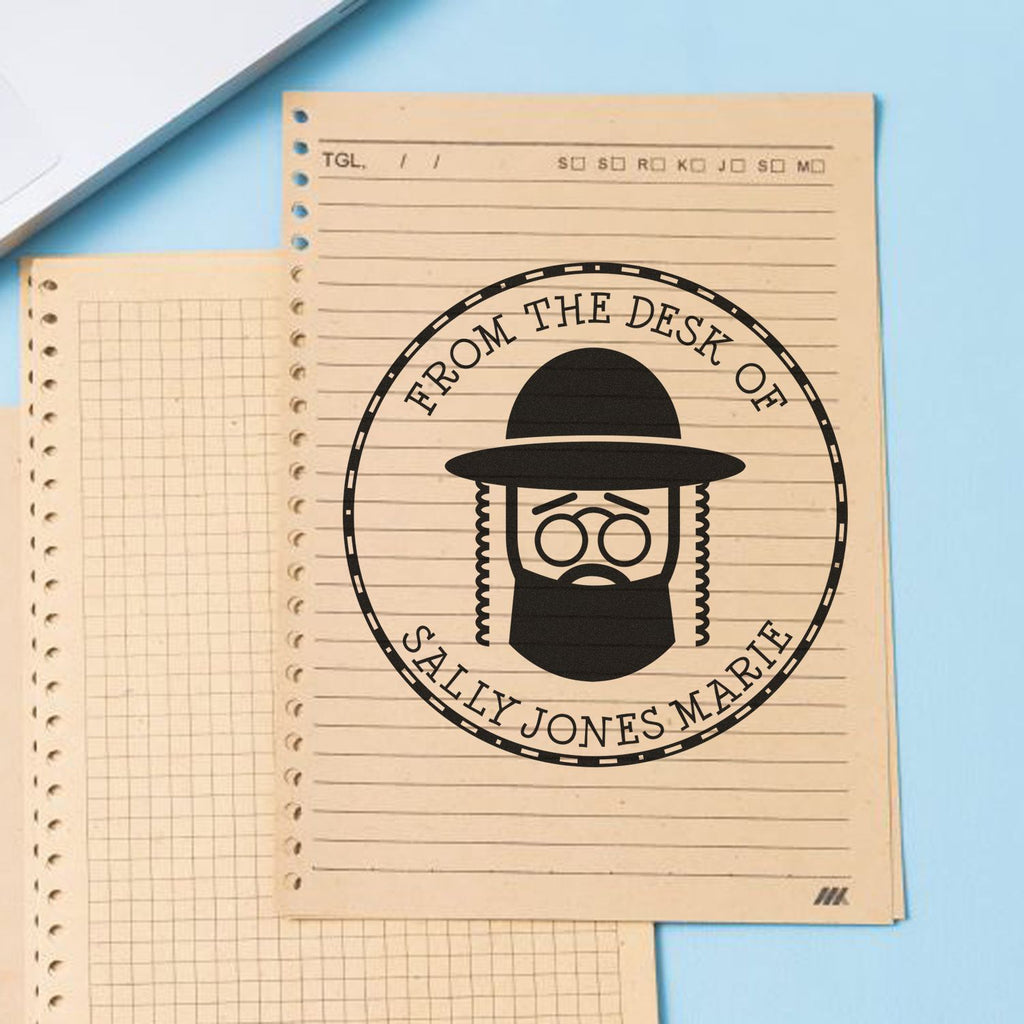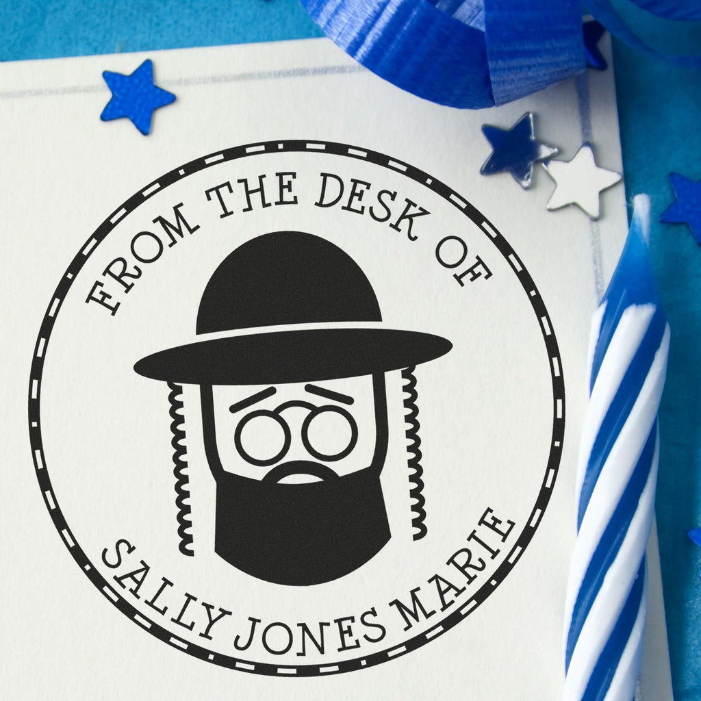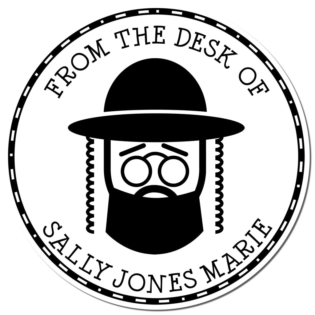 - CUSTOM RABBI DESIGN ELEGANCE: Features a distinguished rabbi image within a beautifully crafted 1-5/8" circular border. Personalized text options include "From The Library of" or "Ex Libris" with your custom message.