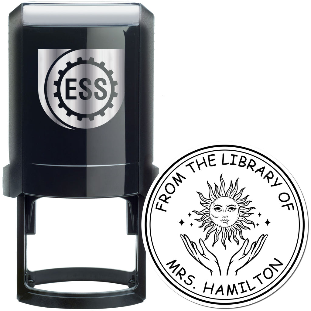 - PERSONALIZED LIBRARY PROTECTION: Transform your book collection with this elegant 1-5/8" self-inking stamp featuring a radiant sun design. Safeguard your precious books while adding a sophisticated touch that makes lending and returns effortless.