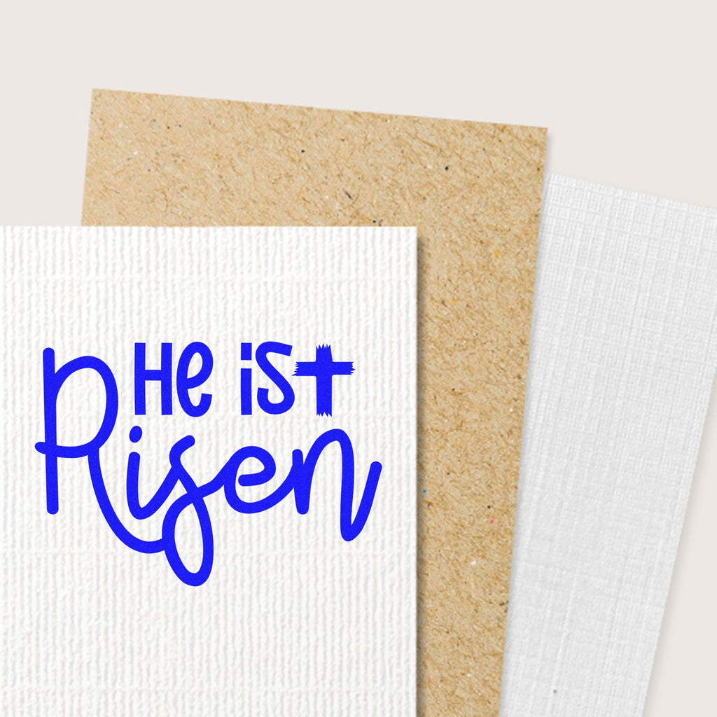 Grace meets craftsmanship in our Risen Christ Self-Inking Note Card Stamp, created for church office teams and Christian card makers who want every message to carry the hope of the Resurrection. One smooth press reveals powerful black brush lettering declaring “He Is Risen” on a clean, white-style canvas—angular strokes dancing with flowing cursive, and the “t” in “is” forming a rugged cross for a beautifully handcrafted feel.