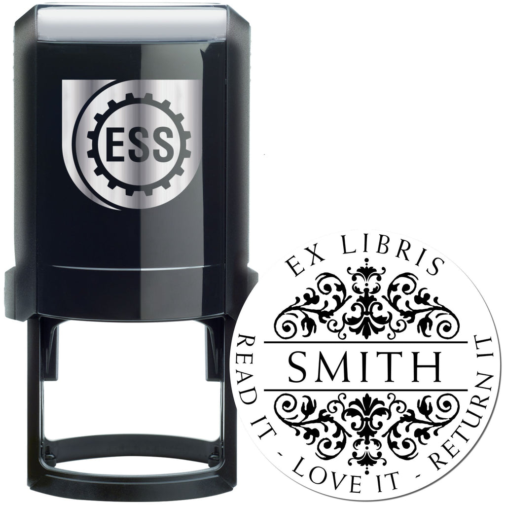 Elevate your book collection with our Self-Inking Royally Named Custom Book Name Stamp! Designed for avid readers and book collectors, this exquisite stamp allows you to personalize your books with elegance and style. Featuring a beautifully crafted design, it proudly displays phrases like "This Book Belongs To" and "From The Library of" along with your name, making it a perfect addition to your personal library. With an impression size of 1-5/8" in diameter, your mark will be both clear and sophisticated.