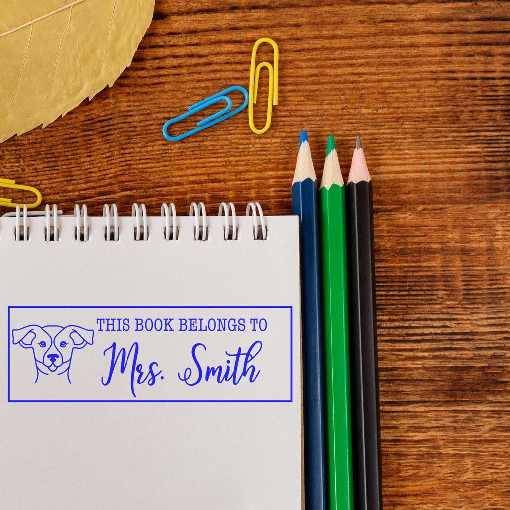 Introducing the Self-Inking Russell Outline Personalized Book Identification Stamp – the perfect way to add a personal touch to your beloved books! Measuring at a convenient 7/8" x 2-1/4", this stylish stamp features a charming Russell icon and the text "This Book Belongs To" personalized with your name. Whether you're a parent wanting to keep track of your child's library or a book lover looking to make your collection uniquely yours, this stamp is a must-have!