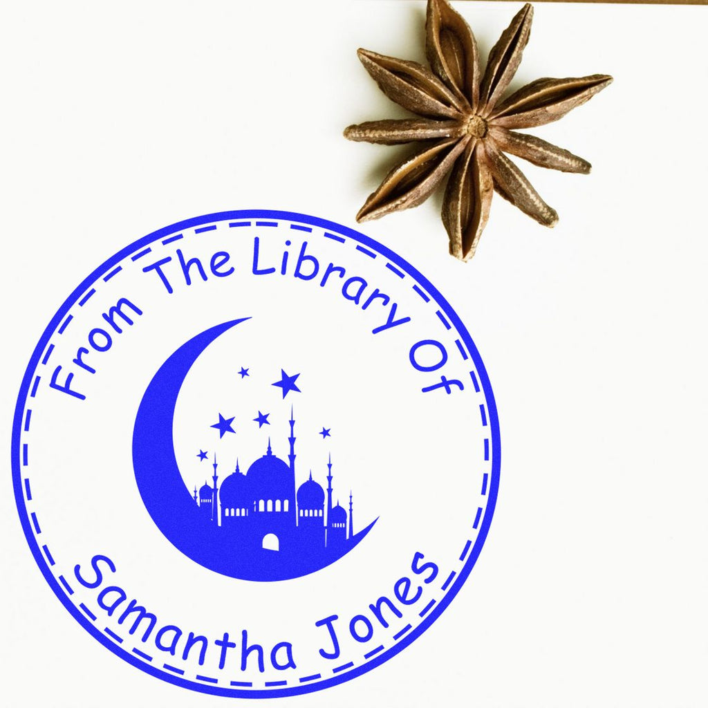 Precision Perfected: Thanks to our cutting-edge laser engraving technology, every stamp promises sharp, standout prints that ensure your messages are impossible to miss. The design features a stunning Sacred Crescent at its center, surrounded by a double ring circular border, with phrases like "This Book Belongs To" and "Ex Libris" elegantly displayed. Measuring 1-5/8" in diameter, it’s the perfect size for all your stamping needs.