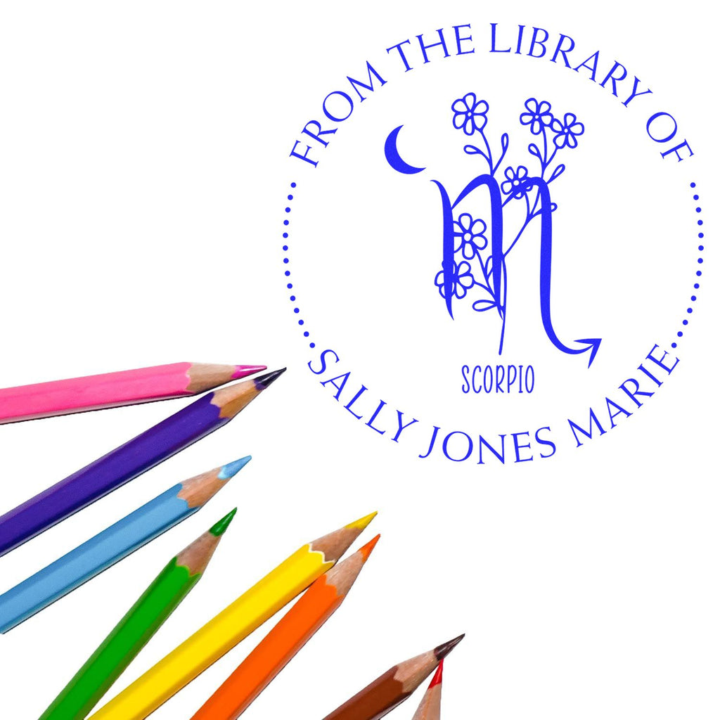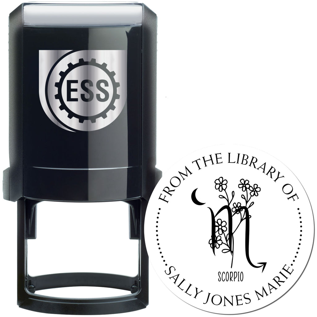Self-Inking Scorpio Zodiac Symbol with Flowers Custom Made Private Library Stamp Highlights and Features