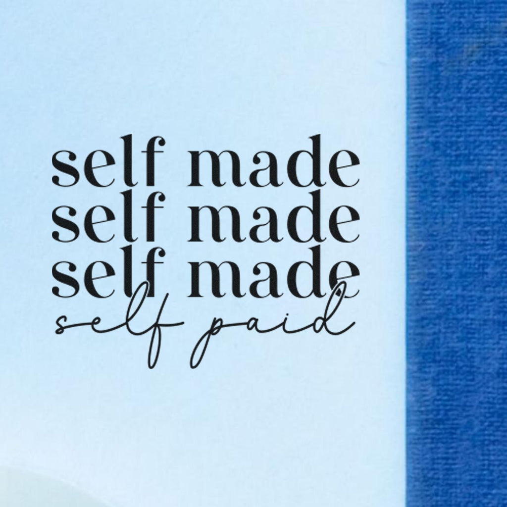 Customize your 1-5/8" square face to showcase your logo, shop name, or message, or choose our striking template: bold serif lettering repeats the phrase three times for instant recognition, while a sweeping script turns the final note into “self paid”—a minimalist, high-contrast look that radiates ambition on apparel tags, packaging, and social shots.