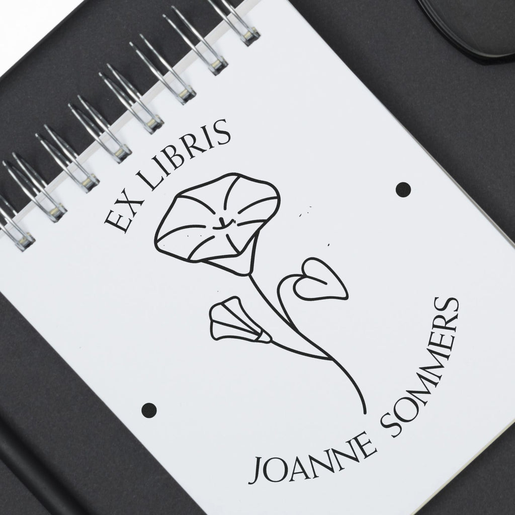 Self-Inking September Morning Glory Custom Made Book Property Stamp Highlights and Features