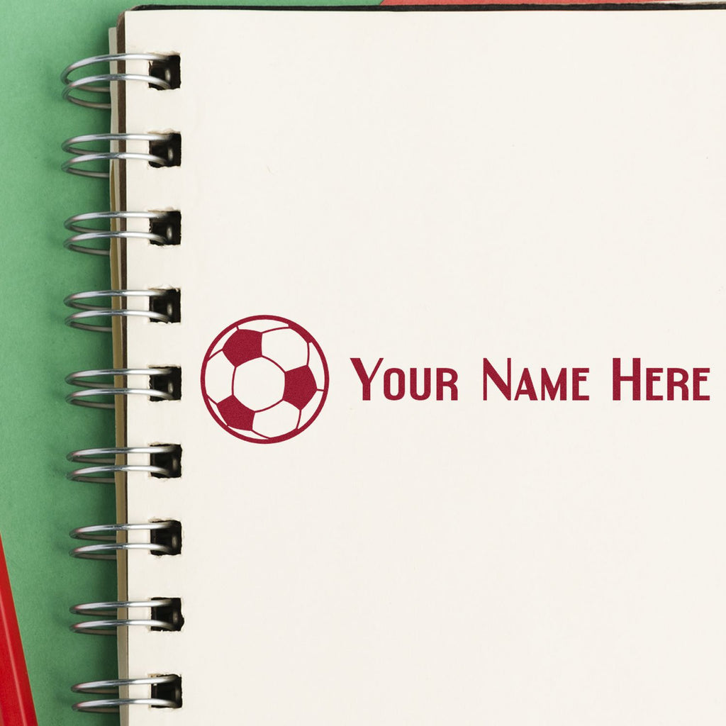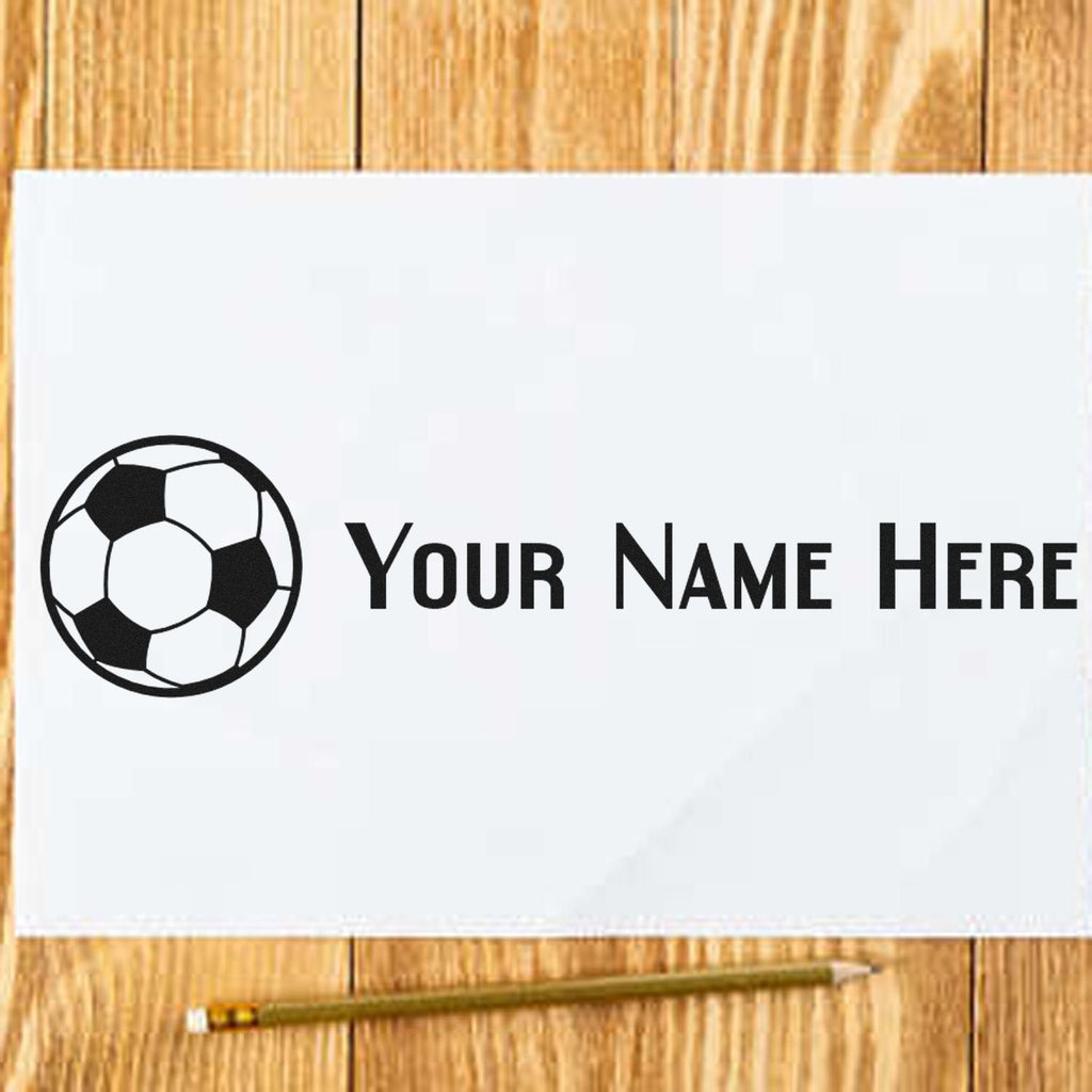 Choose from three sizes: Small, Medium, and Large, to perfectly fit your needs. The design features a classic black and white soccer ball with a space next to it for personalization, capturing the essence of the beautiful game. Perfect for any soccer enthusiast, this stamper is a must-have for those who love to combine functionality with flair.