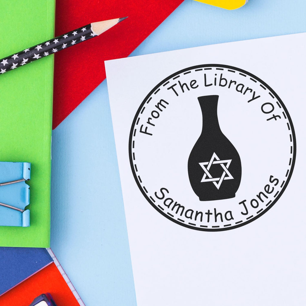 - CUSTOMIZABLE JEWISH GIFT: Featuring a meaningful Solace-giving Vase design with customizable text options including "From The Library of" or "Ex Libris" in a classic double-ring border.