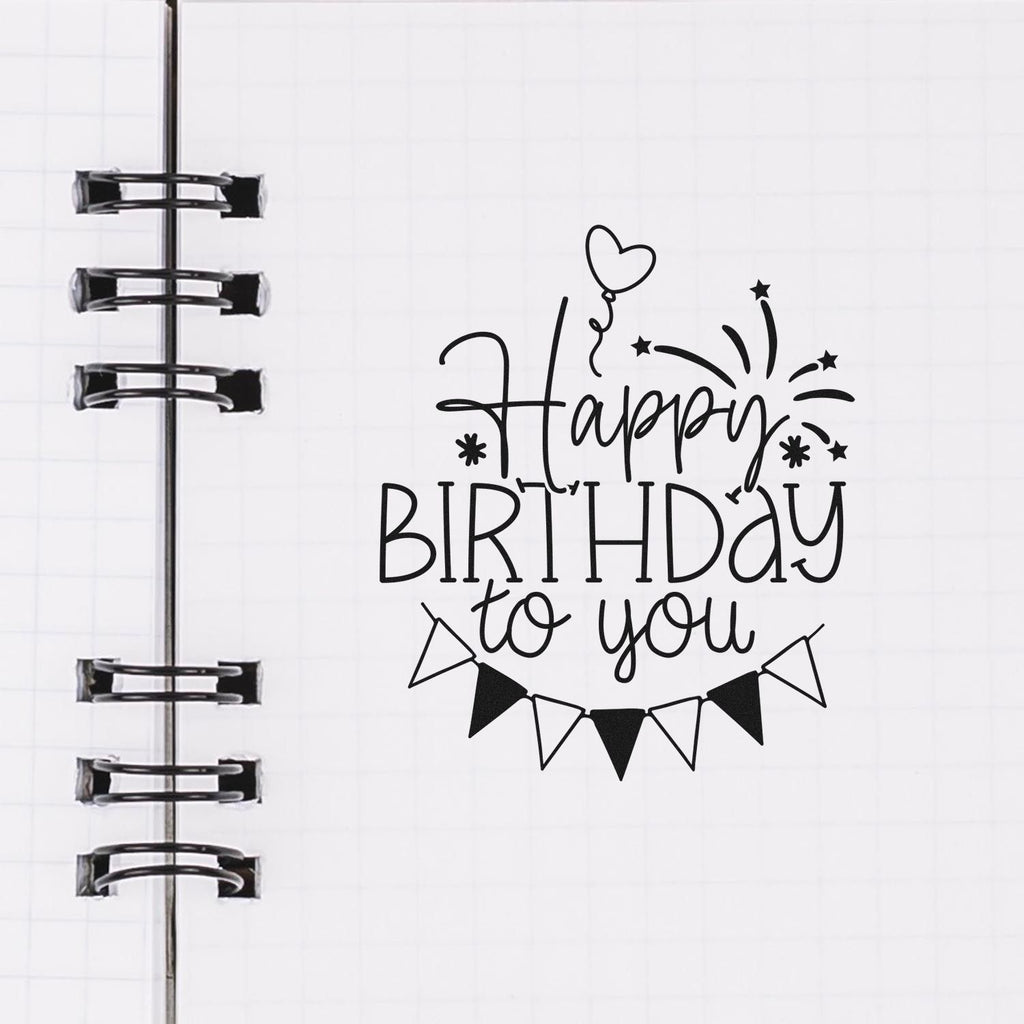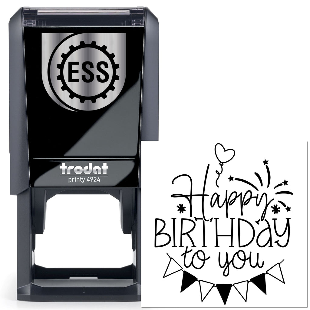Never underestimate the quiet thrill of a perfectly placed stamp — the Self-Inking Sparkling Celebration Card Stamp turns every paper moment into a small ceremony with a luxe, hand-lettered "Happy BIRTHDAY to you" in elegant script and bold type, complete with a heart balloon, starbursts, scattered stars, and a chic pennant banner in a 1-5/8" square that reads like a smile.