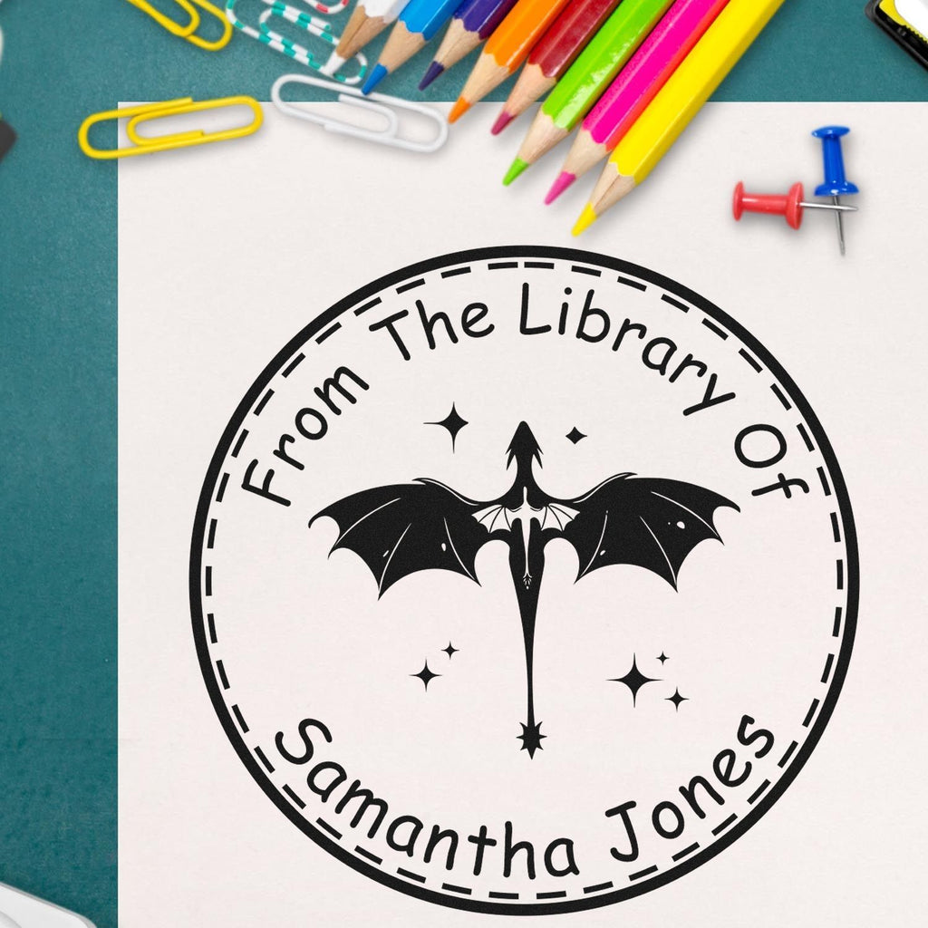 Unleash your inner bibliophile with our Self-Inking Starlight Serpent Custom Made Bibliophile Stamp! This enchanting stamp is not just a tool; it’s a statement piece for every avid reader and book collector. Featuring a stunning Starlight Serpent Dragon design, this stamp is perfect for personalizing your beloved books. With a diameter of 1-5/8", it fits perfectly on the inside cover of any book, ensuring your ownership is clear and stylish.