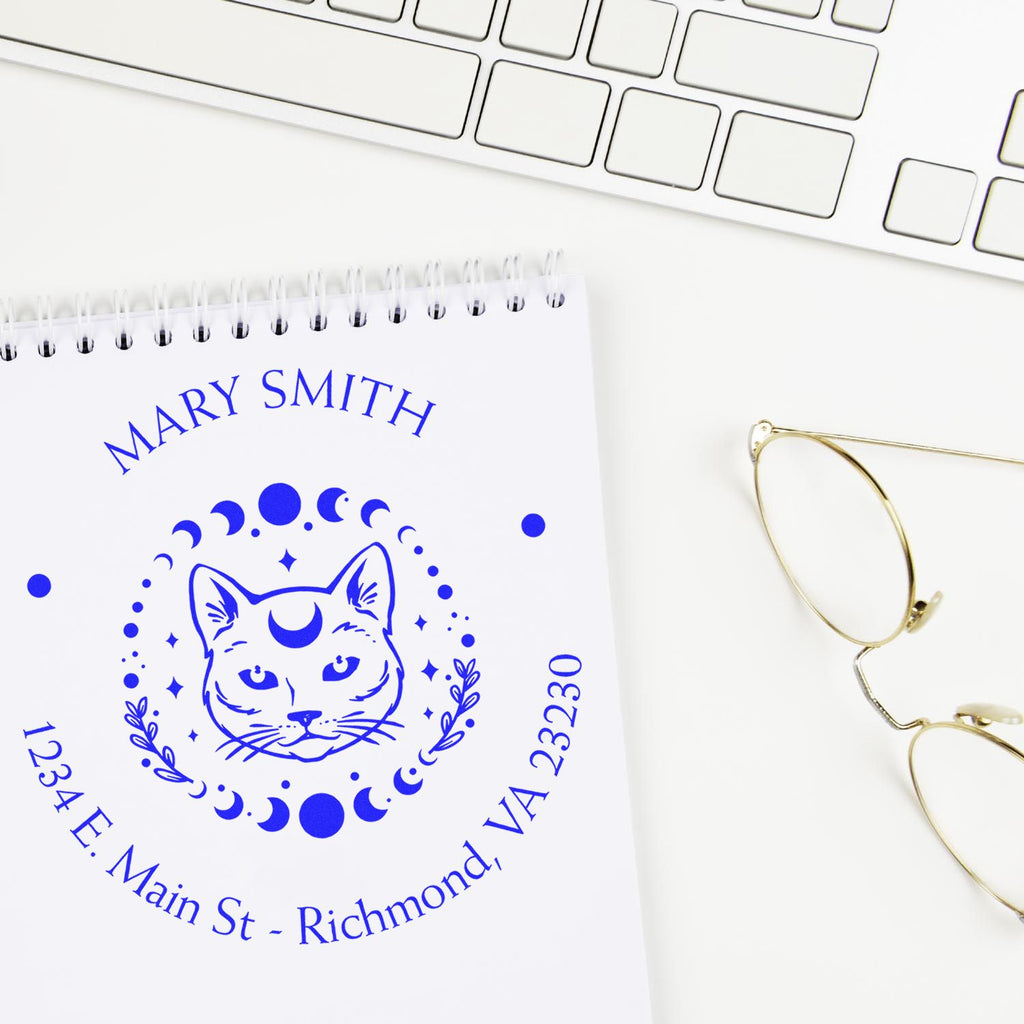 Self-Inking Supernatural Cat Customized Mailing Stamper Highlights and Features