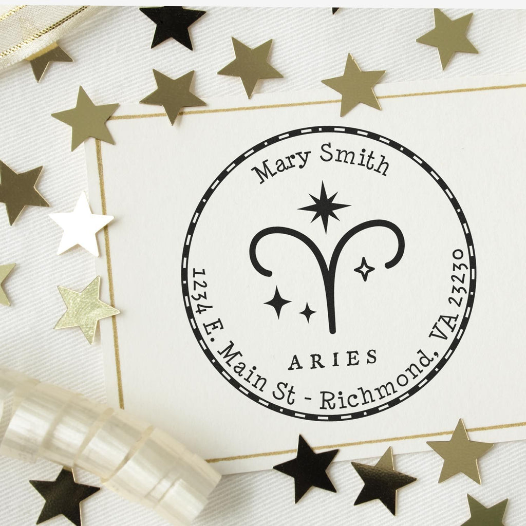 - CUSTOMIZED HOME STAMPER: Make your correspondence stand out with our Self-Inking Symbolic Aries Custom Made Home Address Stamp. This unique stamp features the Aries zodiac symbol, perfect for astrology enthusiasts looking to personalize their mail. Impress your friends and family with a touch of celestial charm!