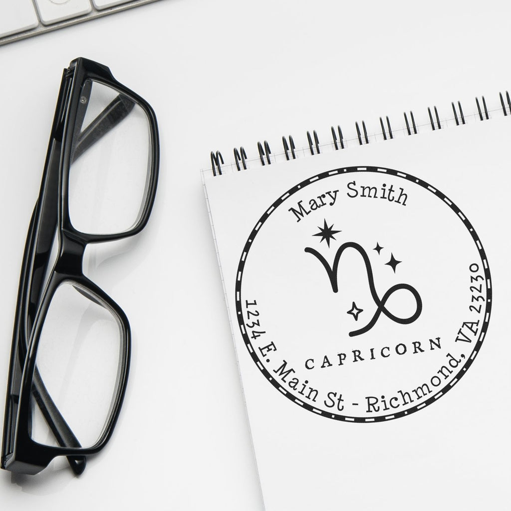 - PERSONALIZED DESIGN: Stand out with a unique, customized stamp featuring the Capricorn zodiac symbol surrounded by stars. This 1-5/8" diameter stamp not only serves a practical purpose but also reflects your astrological identity beautifully. Make your correspondence truly yours!