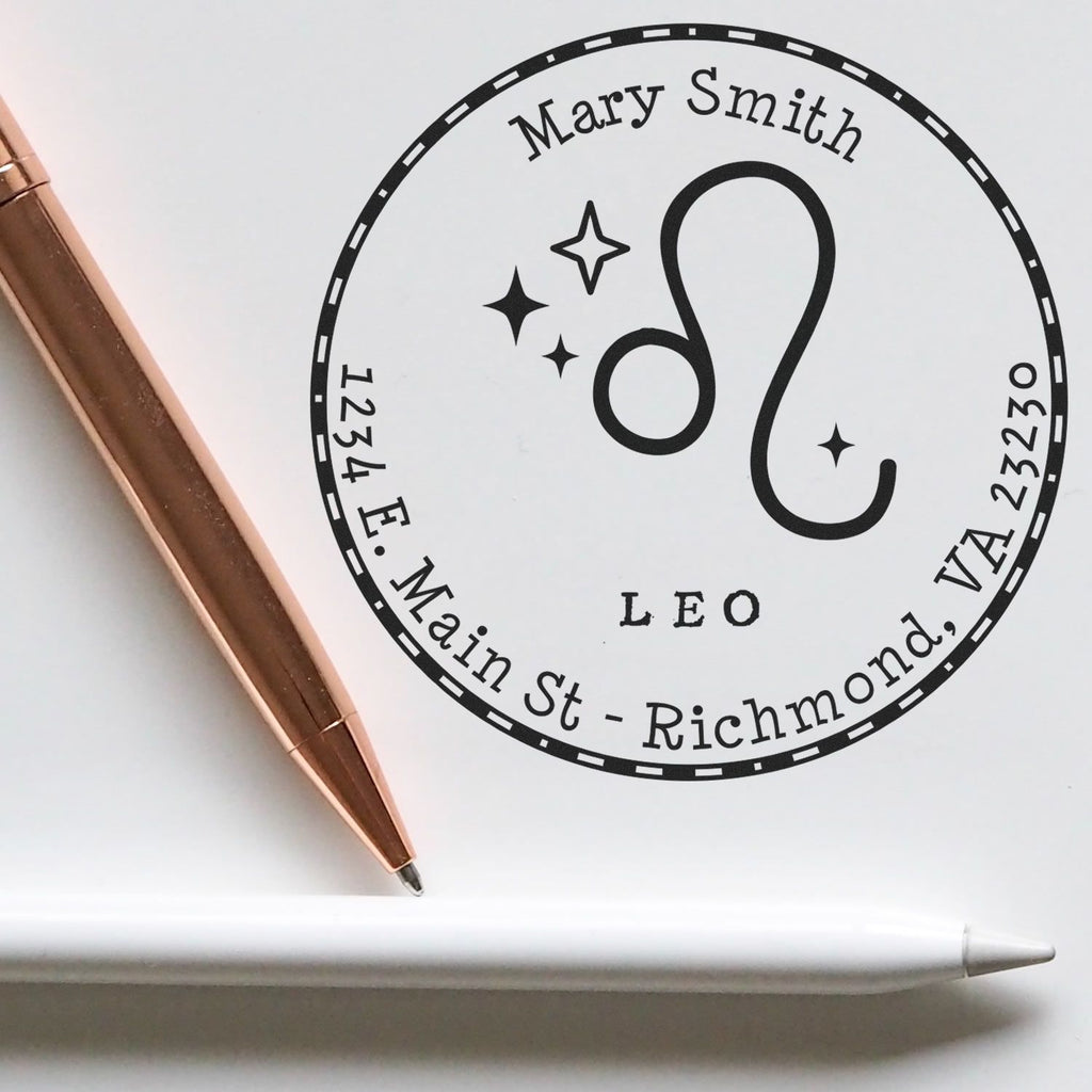 - CUSTOMIZED NAME AND ADDRESS STAMPER: Elevate your correspondence with our Self-Inking Symbolic Leo Personalized Mail Stamp. Perfect for astrology enthusiasts, this stamp adds a personal touch to your mailings, making them memorable and unique.