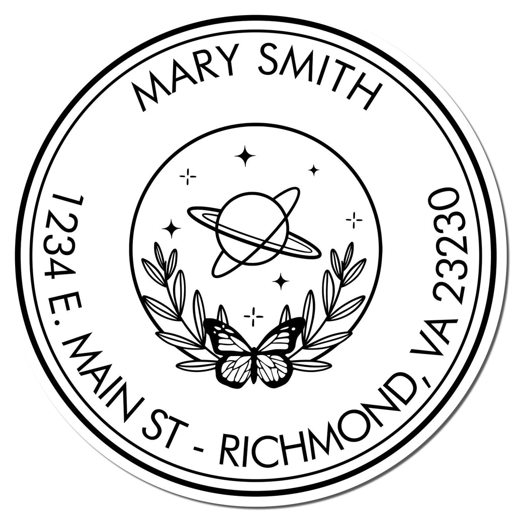 - VERSATILE DESIGN featuring a symbolic solar planet with rings and stars, this stamp is not just functional but also visually appealing. The 1-5/8" impression size is perfect for addresses, logos, or personal messages, making it ideal for weddings, businesses, and personal use. Add a touch of creativity to your mail!