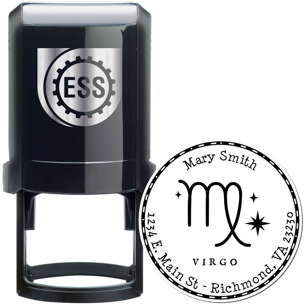 - STUNNING DESIGN featuring the Virgo zodiac symbol! The celestial design, complete with stars and a solid circle border, makes your stamp not just functional but also a beautiful addition to your stationery. Impress your friends and family with this unique design!